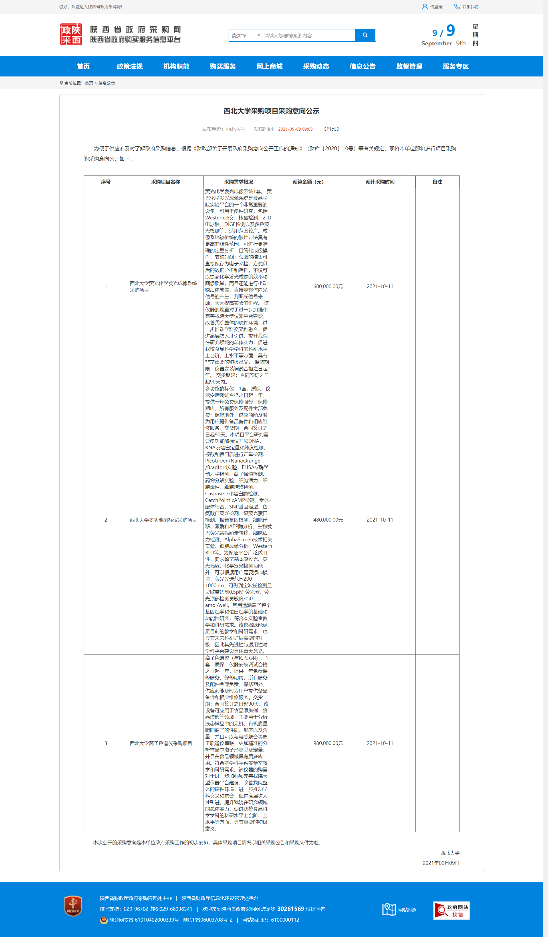 乐投平台采购项目采购意向公示 作者: 编辑:采购与招标办公室 时间:2021-09-09 原公告地址:http://www.ccgp-shaanxi.gov.cn/notice/noticeDetail.do?noticeguid=8a85be337bc012a4017bc81206533a78