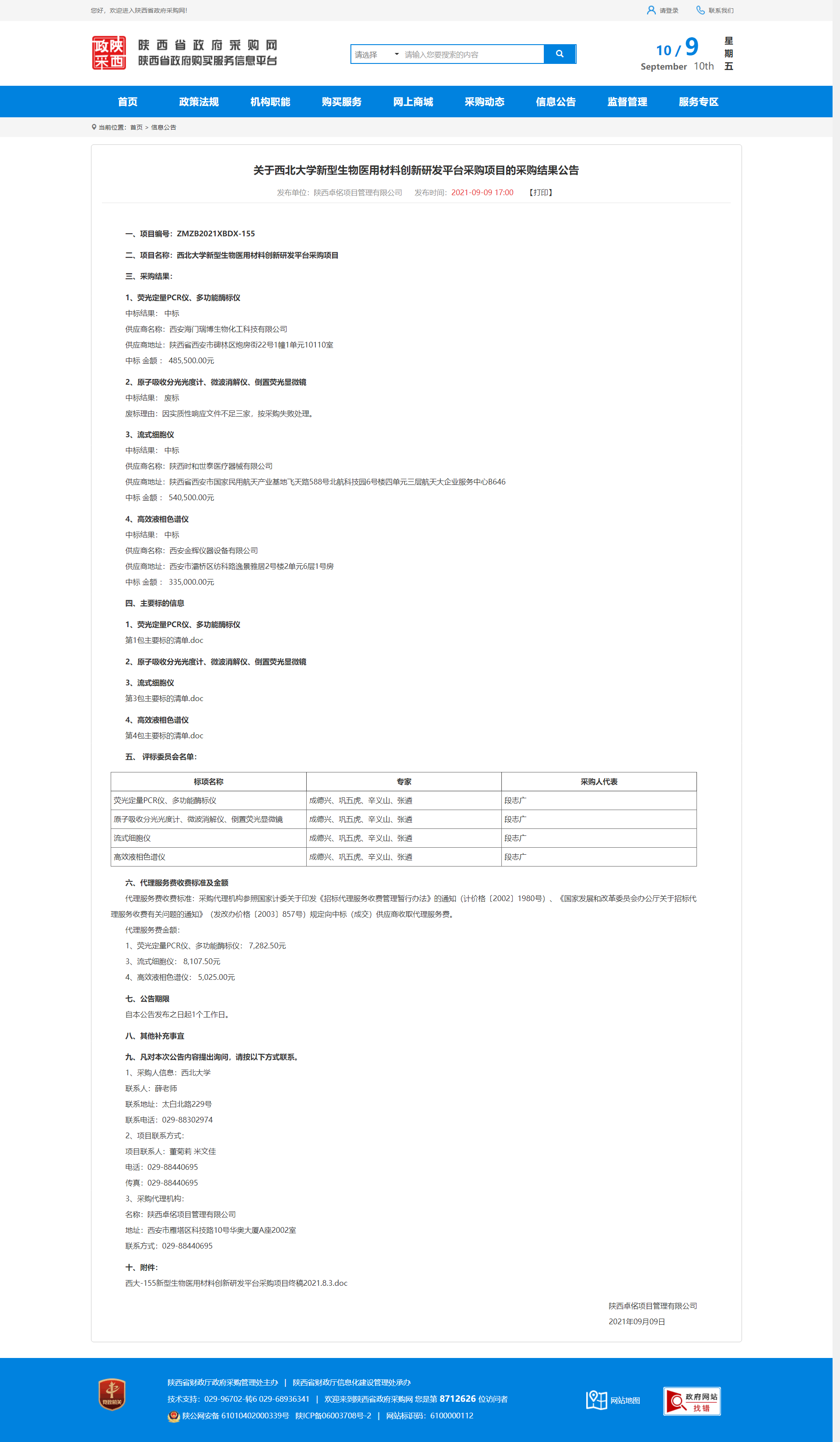关于乐投平台新型生物医用材料创新研发平台采购项目的采购结果公告 作者: 编辑:采购与招标办公室 时间:2021-09-10 原公告地址:http://www.ccgp-shaanxi.gov.cn/notice/noticeDetail.do?noticeguid=8a85be347bc00296017bc9c746595f00