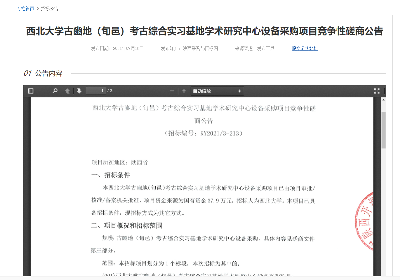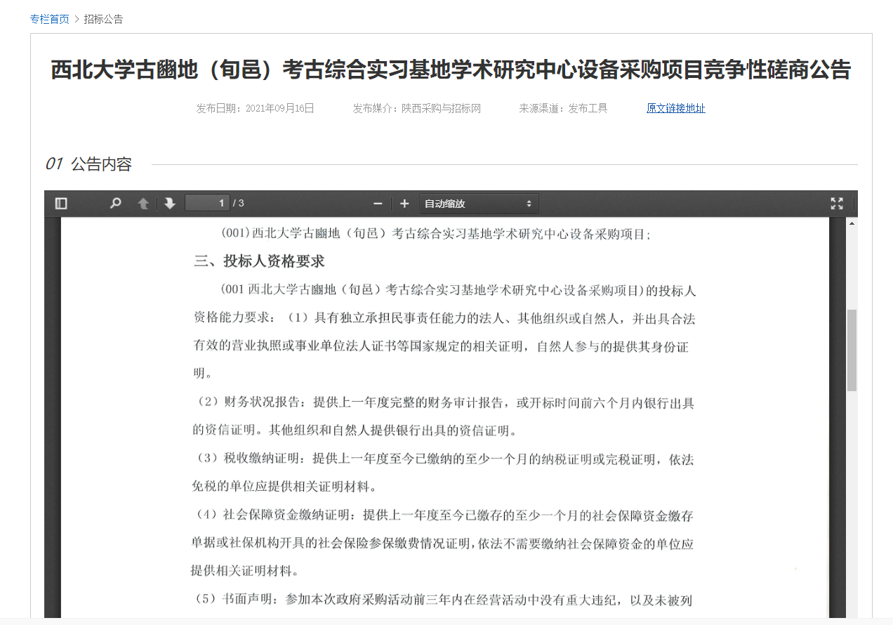 乐投平台古豳地(旬邑)考古综合实习基地学术研究中心设备采购项目竞争性磋商公告 作者: 编辑:采购与招标办公室 时间:2021-09-17 原公告地址:http://bulletin.sntba.com/biddingBulletin/2021-09-16/343879.html