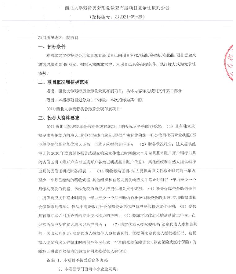乐投平台残特奥会形象景观布展项目竞争性谈判公告