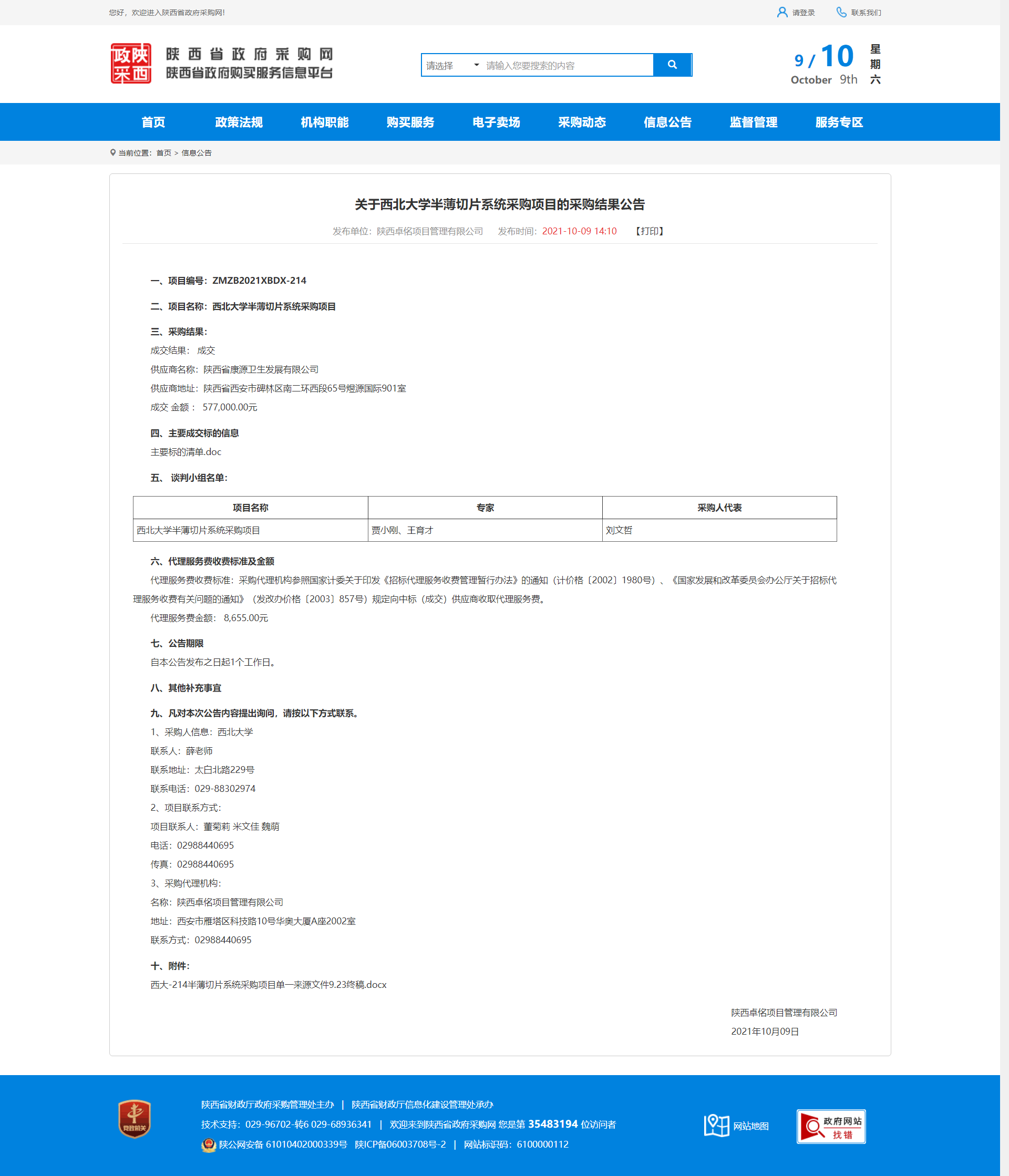 关于乐投平台半薄切片系统采购项目的采购结果公告 作者: 编辑:采购与招标办公室 时间:2021-10-09 原公告地址:http://www.ccgp-shaanxi.gov.cn/notice/noticeDetail.do?noticeguid=8a85be337c20d0b4017c63ab46ca5540
