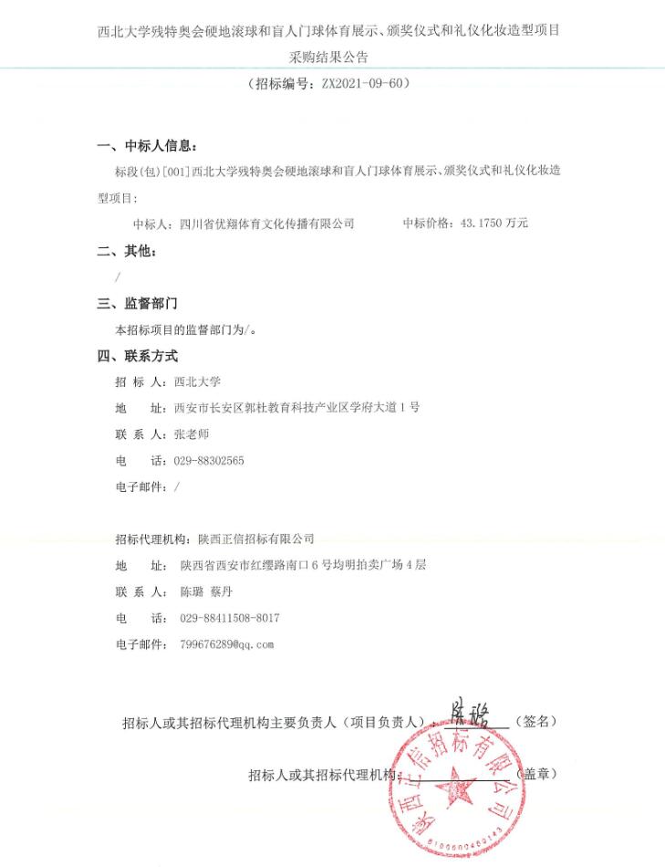 关于乐投平台残特奥会硬地滚球和盲人门球体育展示、颁奖仪式和礼仪化妆造型项目采购结果公告