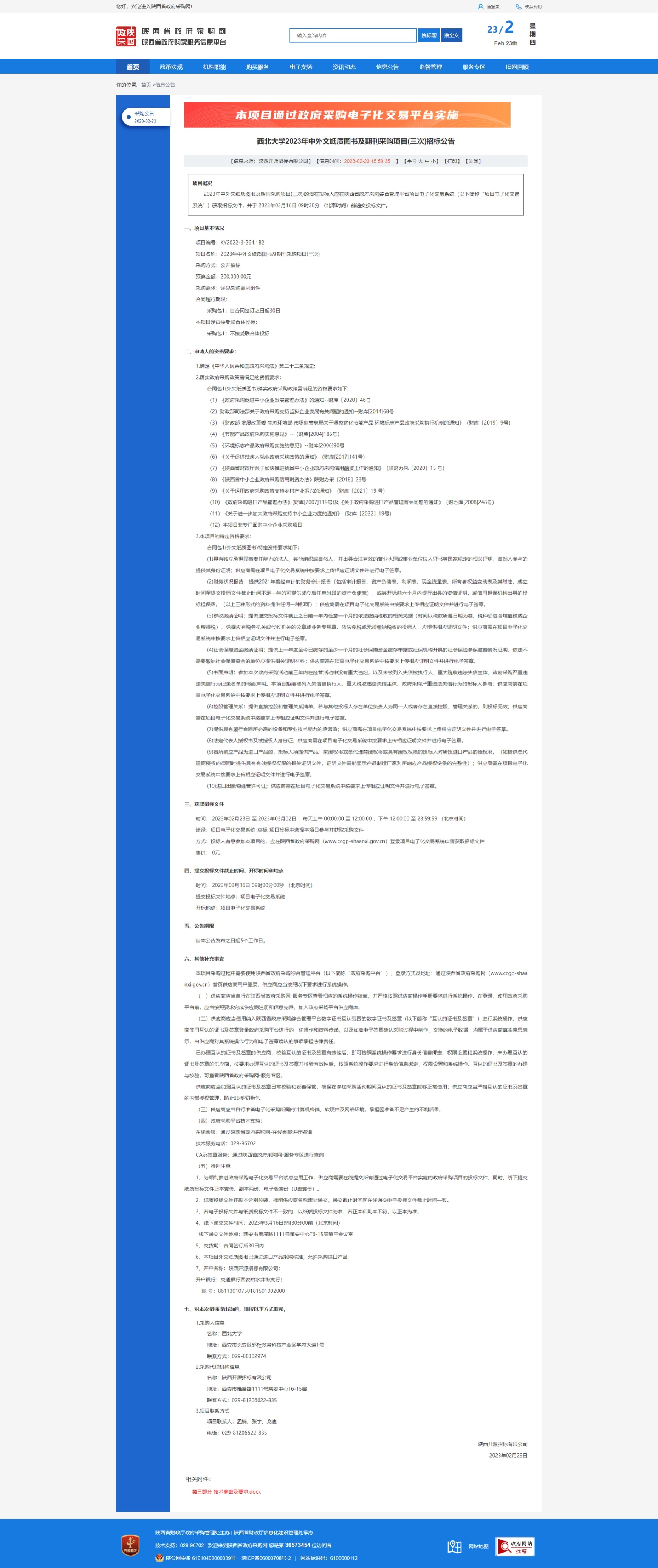 乐投平台2023年中外文纸质图书及期刊采购项目(三次)招标公告 作者: 编辑:采购与招标办公室 时间:2023-02-23 原公告链接:http://www.ccgp-shaanxi.gov.cn/freecms/site/shaanxi/ggxx/info/2023/8a69c672865ced8c01867d3e22983dee.html?noticeType=001011¬iceId=de2454c9-b350-11ed-9a8e-08c0eb20c666