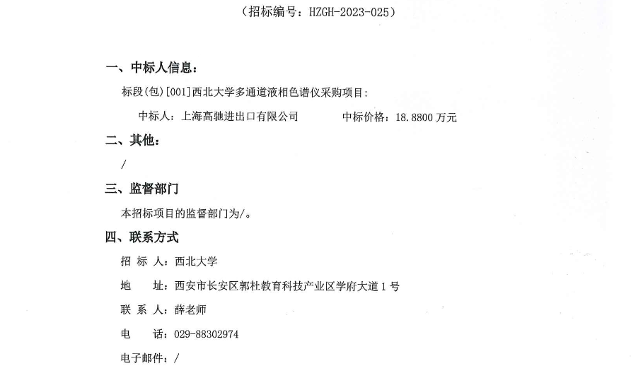 乐投平台多通道液相色谱仪采购项目中标结果公示 作者: 编辑:采购与招标办公室 时间:2023-07-14 原公告链接:http://bulletin.sntba.com/resultBulletin/2023-07-14/585694.html