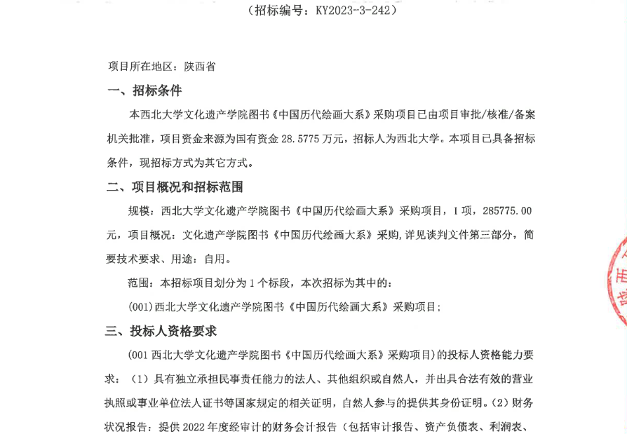 乐投平台《中国历代绘画大系》采购项目竞争性谈判公告 作者: 编辑:采购与招标办公室 时间:2023-09-15 原公告链接:http://bulletin.sntba.com/biddingBulletin/2023-09-14/664967.html