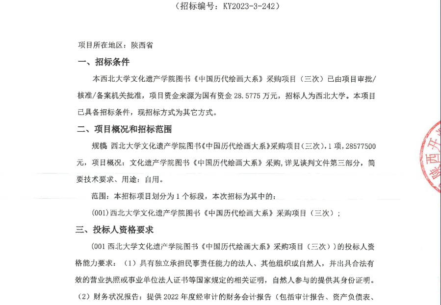乐投平台文化遗产学院图书《中国历代绘画大系》采购项目(三次)竞争性谈判公告 作者: 编辑:采购与招标办公室 时间:2023-10-17 原公告链接:http://bulletin.sntba.com/biddingBulletin/2023-10-17/734748.html