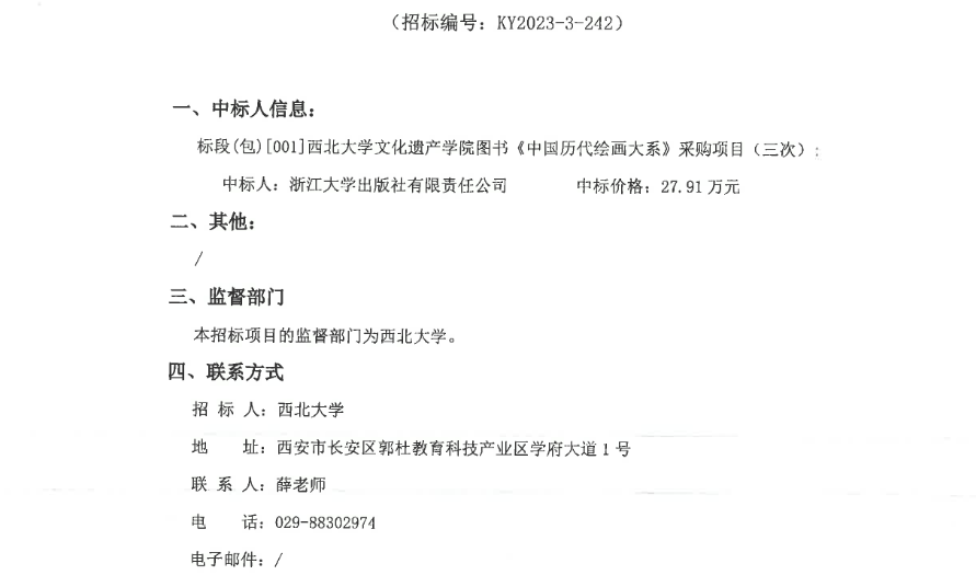 乐投平台文化遗产学院图书《中国历代绘画大系》采购项目(三次)成交公告 作者: 编辑:采购与招标办公室 时间:2023-10-25 原公告链接:http://bulletin.sntba.com/resultBulletin/2023-10-24/752147.html