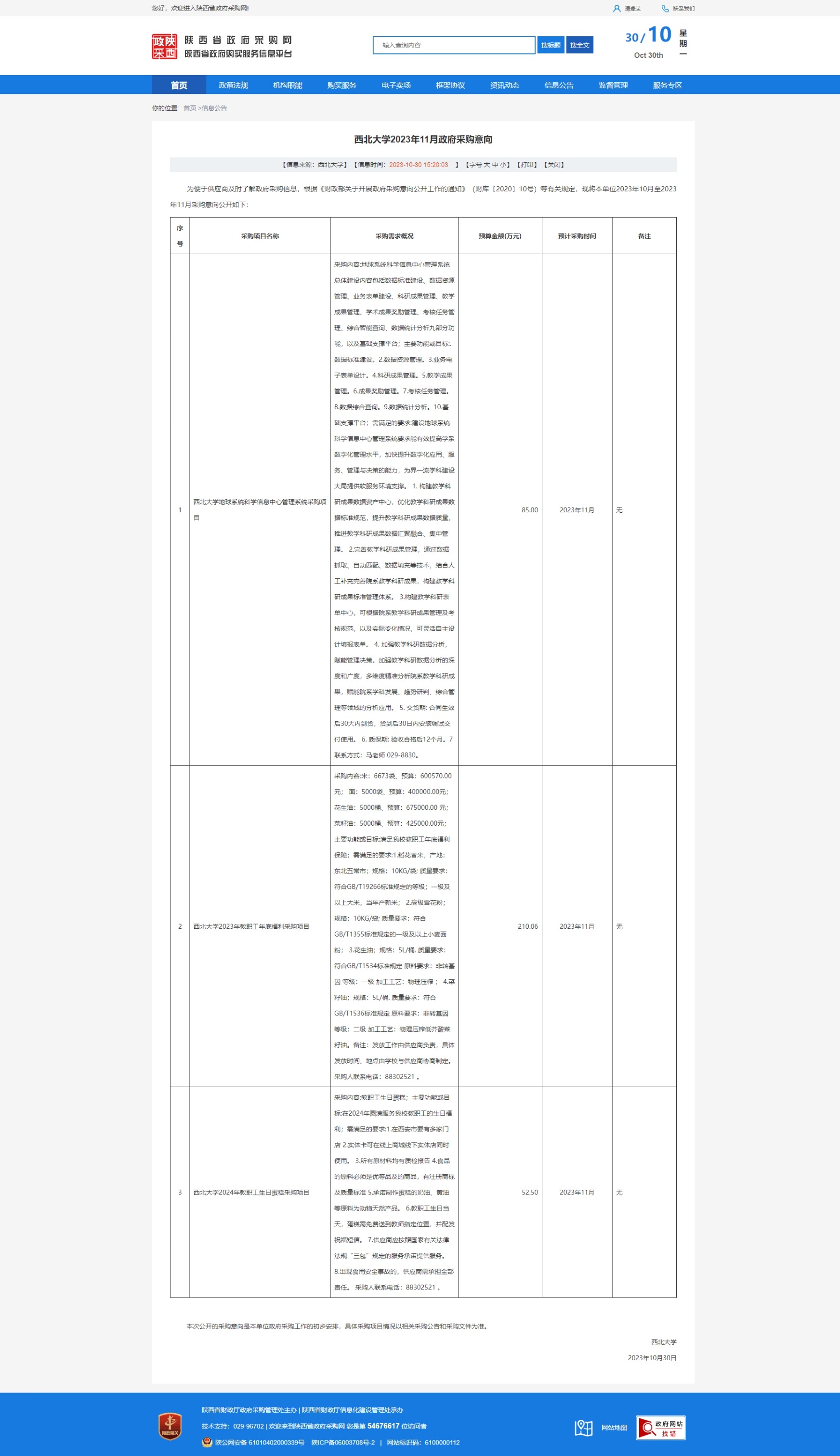 乐投平台2023年11月政府采购意向 作者: 编辑:采购与招标办公室 时间:2023-10-30 原公告链接:http://www.ccgp-shaanxi.gov.cn/freecms/site/shaanxi/ggxx/info/2023/8a69c1288b698e63018b6ad75f505d94.html?noticeType=59¬iceId=0d61a29b-76f6-11ee-9a8e-08c0eb20c666