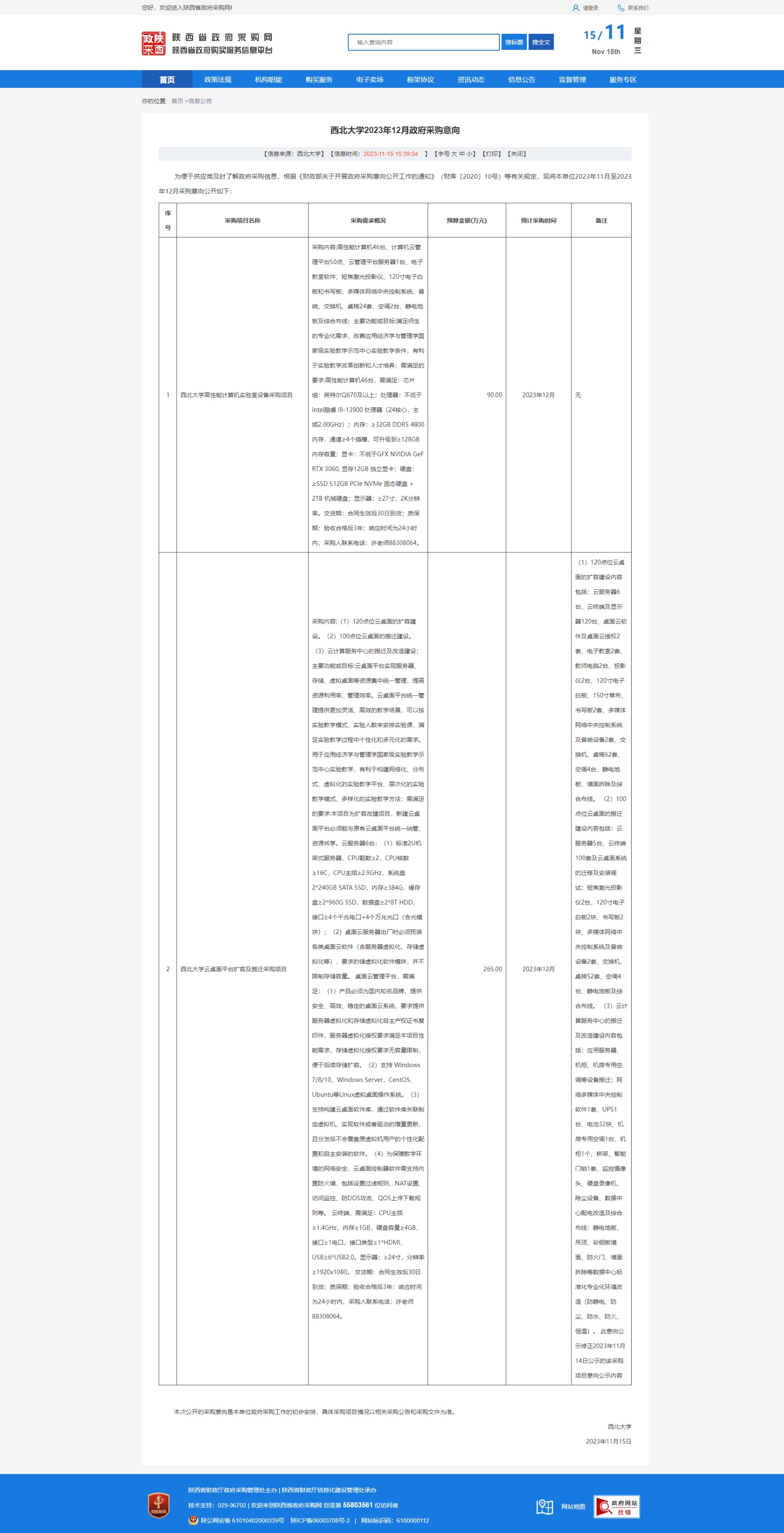 乐投平台2023年12月政府采购意向 作者: 编辑:采购与招标办公室 时间:2023-11-14 原公告链接:http://www.ccgp-shaanxi.gov.cn/freecms/site/shaanxi/ggxx/info/2023/8a69c2728bccc23e018bd1b3df996cd5.html?noticeType=59¬iceId=63f8348a-838b-11ee-9a8e-08c0eb20c666