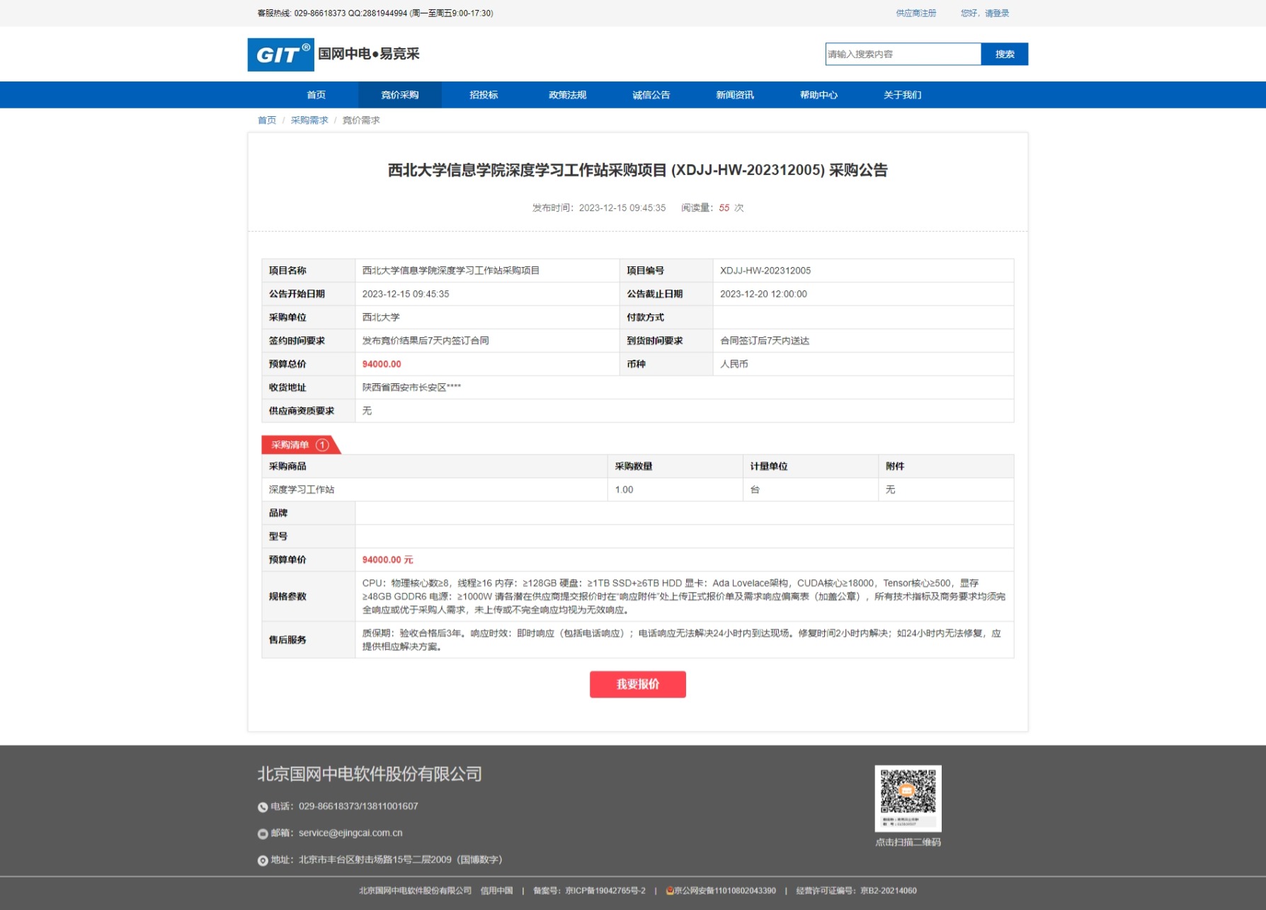 乐投平台信息学院深度学习工作站采购项目 (XDJJ-HW-202312005) 采购公告 作者: 编辑:王雯岚 时间:2023-12-19 原公告链接:https://www.ejingcai.com.cn/site/bidding/detail/7837