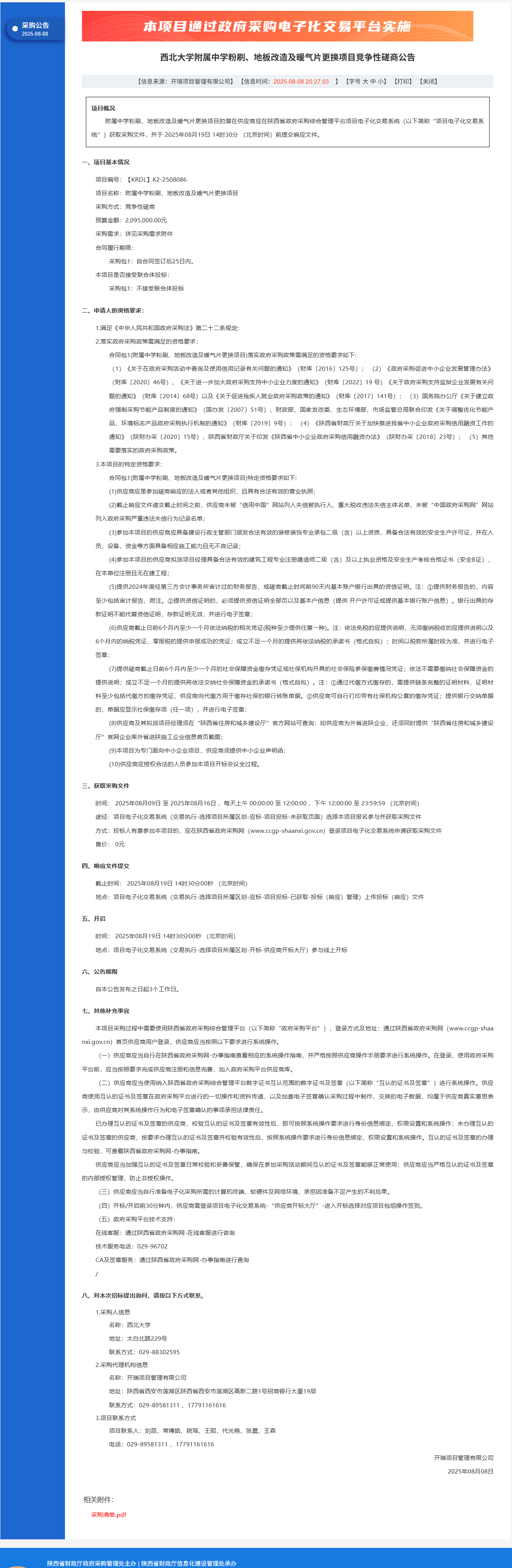 乐投平台附属中学粉刷、地板改造及暖气片更换项目竞争性磋商公告 作者: 编辑:党丹珩 时间:2025-08-08 公告地址:https://www.ccgp-shaanxi.gov.cn/freecms/site/shaanxi/ggxx/info/2025/8a69c4d59860f6420198899b50a47f9c.html