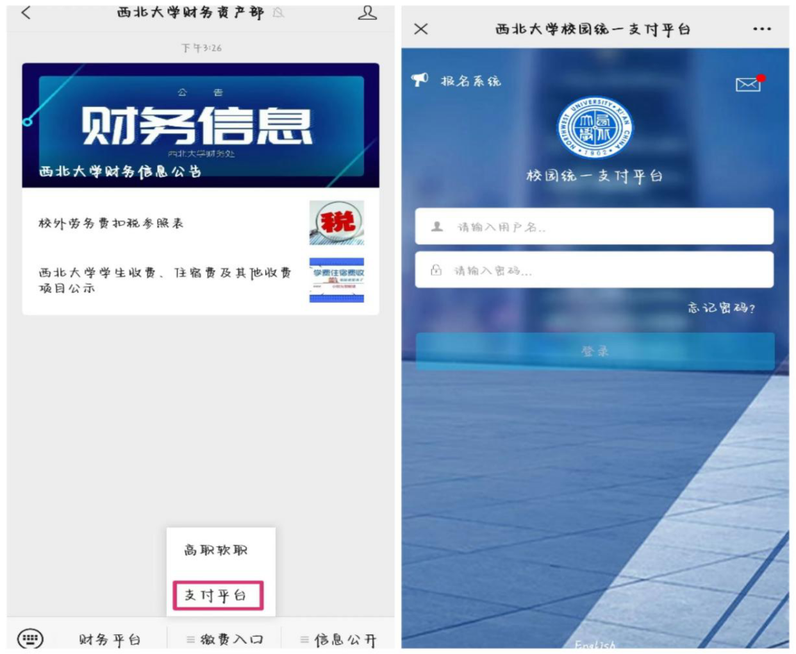 手机端:关注“乐投平台财务资产部”微信公众号,选择“缴费入口”点击“支付平台”进入。(见下图)