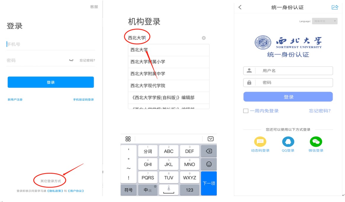 5.下载过后,进入登录页面——“其它登录方式”——单位栏输入“乐投平台”——跳转到学校统一身份认证登录。