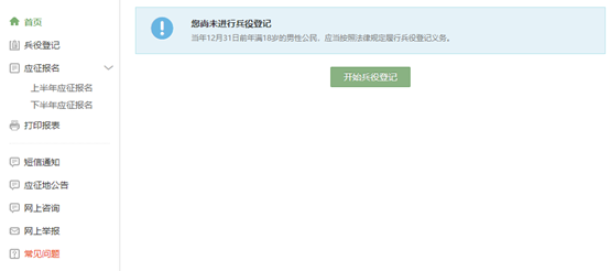 登录系统以后,点击右侧的“开始兵役登记”进行兵役登记啦!