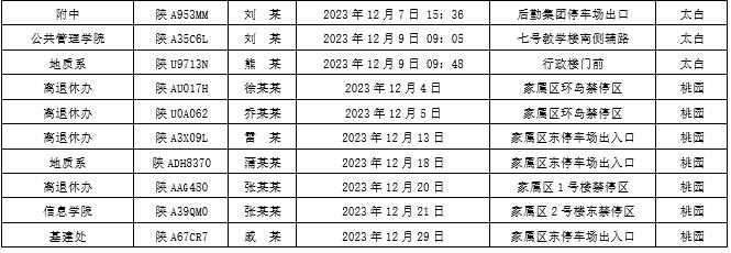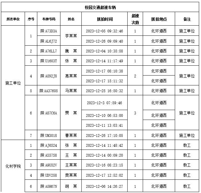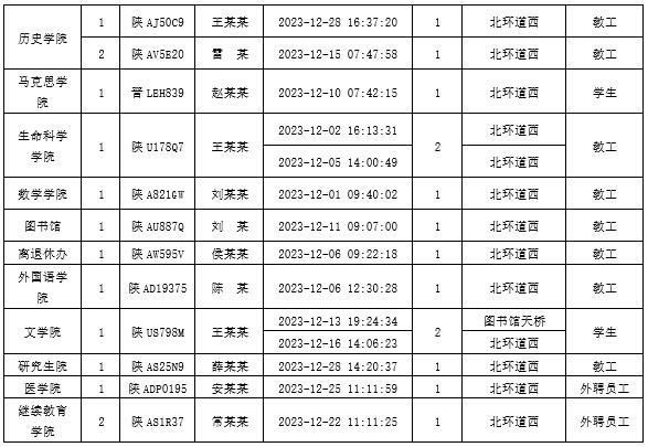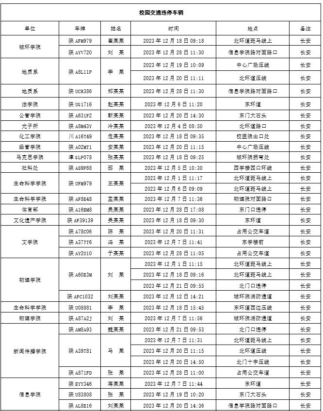 为加强校内道路交通安全管理,规范校内交通秩序,根据《乐投平台校园道路交通管理办法》有关要求,现将2023年12月校园交通违章车辆予以曝光,所在单位负责对本单位违章师生员工进行交通安全教育和日常管理。