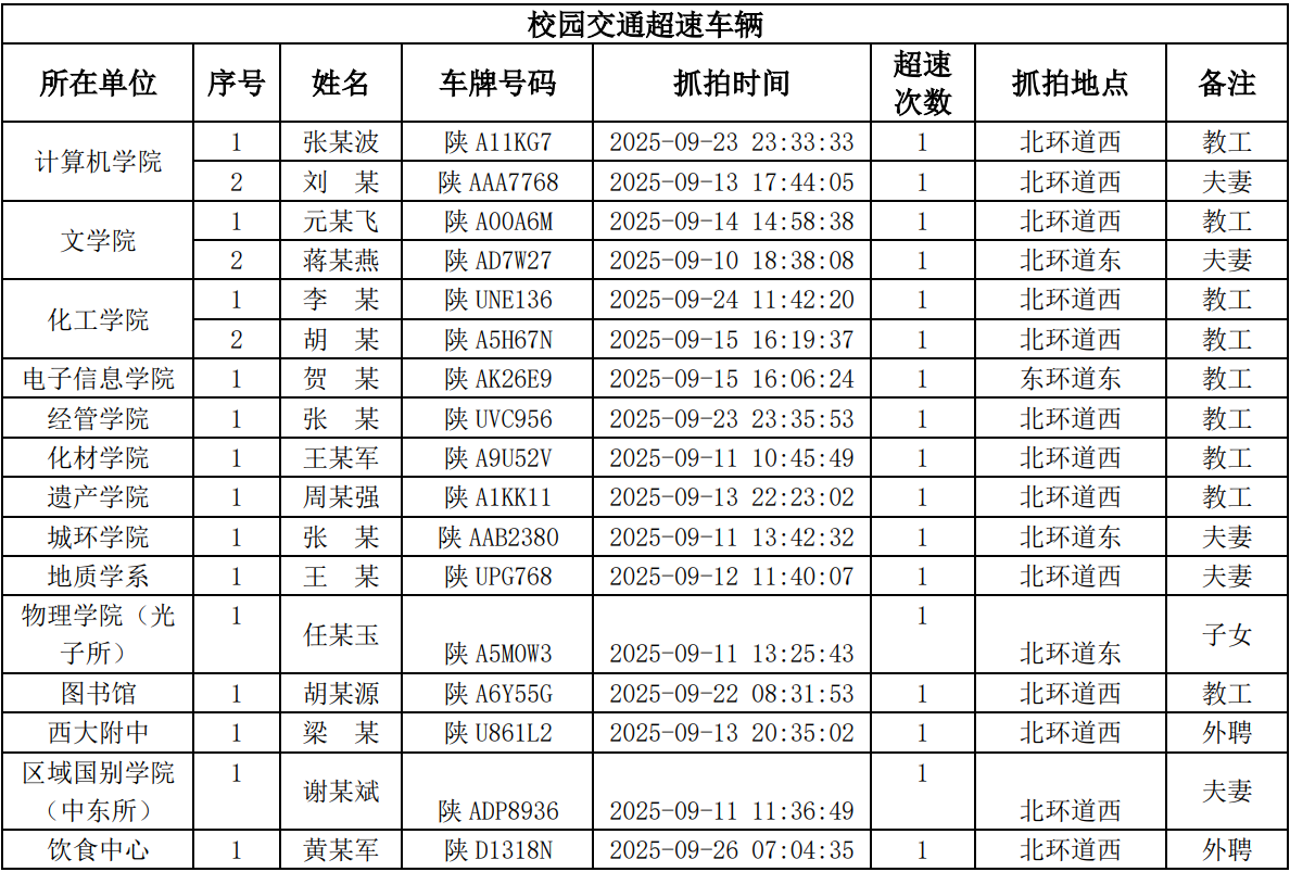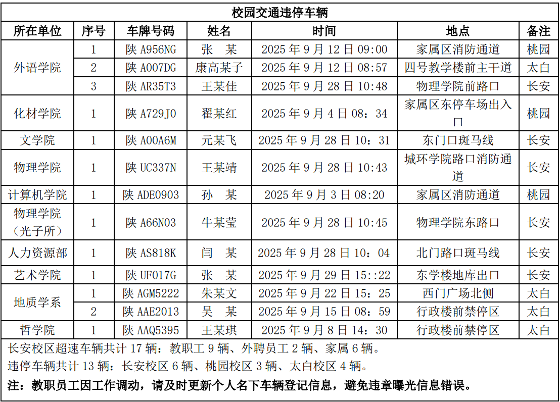 为进一步加强校园交通管理,保障校园交通安全有序,维护学校正常的教学、科研和生活秩序,切实保护师生员工的人身财产安全,根据《乐投平台校园交通安全管理规定》的相关要求,现将2025年9月校园交通违章车辆予以曝光,具体要求与违章信息如下: