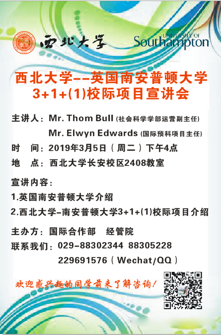 乐投平台-英国南安普顿大学3+1+(1)校际项目宣讲会