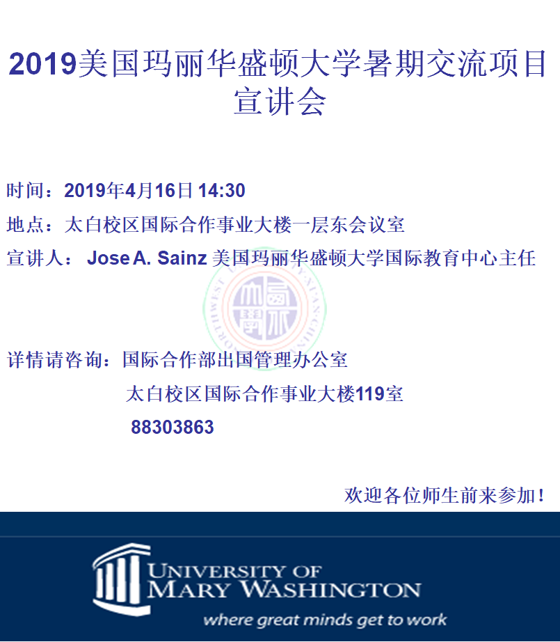 2019美国玛丽华盛顿大学暑期交流项目宣讲会