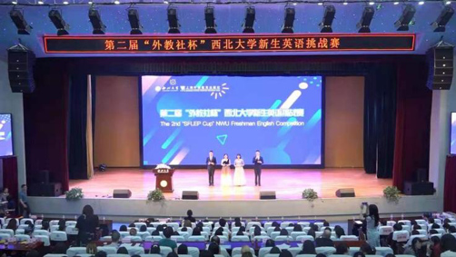 本届新生英语挑战赛由上海外语教育出版社有限公司冠名赞助,并得到学校教务处、学生工作部(处)与校团委的大力支持,学校20个院系500多名学生报名参赛,乐投平台英语读写演讲训练基地20名指导教师和50名学生志愿者参与了赛事的筹备和组织工作。演讲决赛共有来自外语、新传、数学、信科、公管、生科、食品、城环、文遗等9个院系的15名选手同台竞技,以My NWU Story为题,用英语讲述了自己的西大故事。同时,有来自学校10多个院系的200余名同学到现场观看了比赛。外国语学院教授魏水利、任海棠、李建利、曹若男及外教Jack Bouquet担任此次演讲决赛的评委。教务处处长曹蓉、学生工作部(处)部长董国强、校团委书记寇嘉,以及外国语学院党委书记王军、副书记刘建波、行政副院长赵争平,还有上海外语教育出版社陕西公司经理王政等应邀出席了颁奖仪式并为获奖者颁奖。