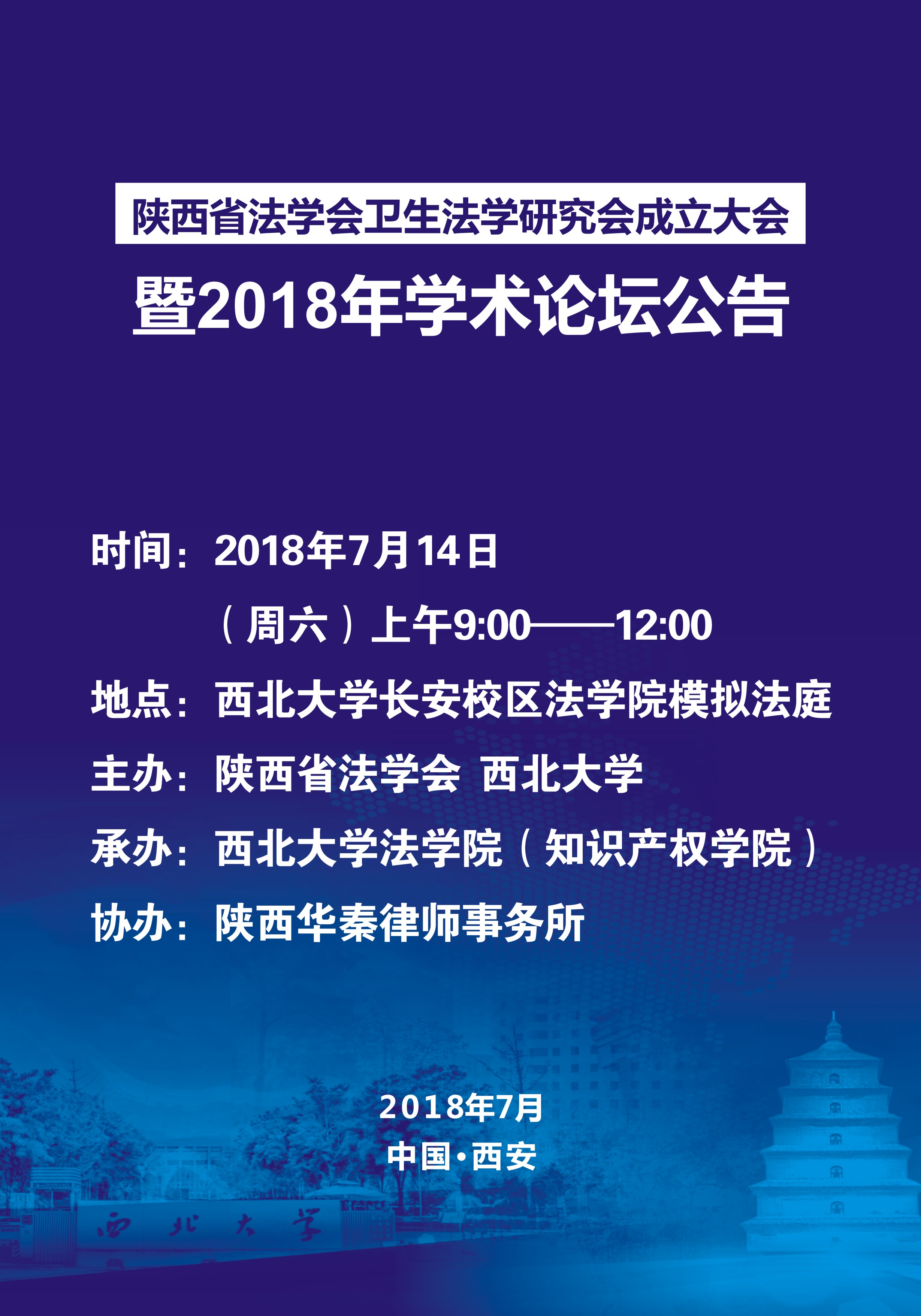陕西省法学会卫生法学研究会成立大会 暨2018年学术论坛公告