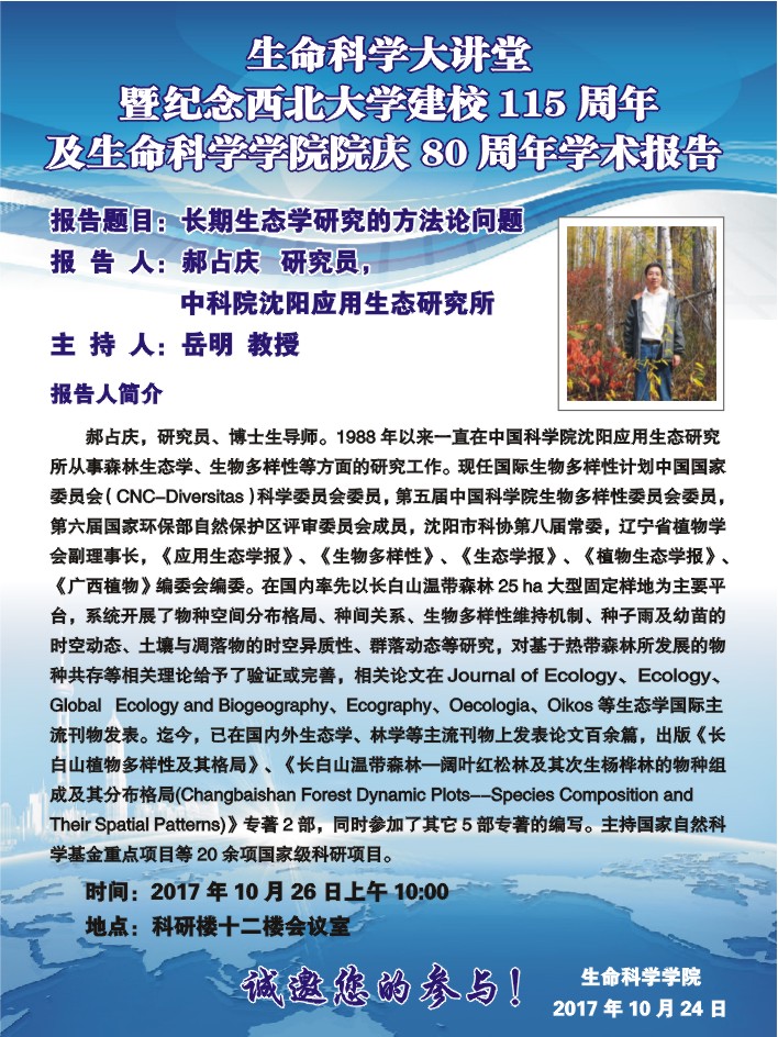 生命科学大讲堂-暨纪念乐投平台建校115周年及生命科学学院院庆80周年学术报告【1】