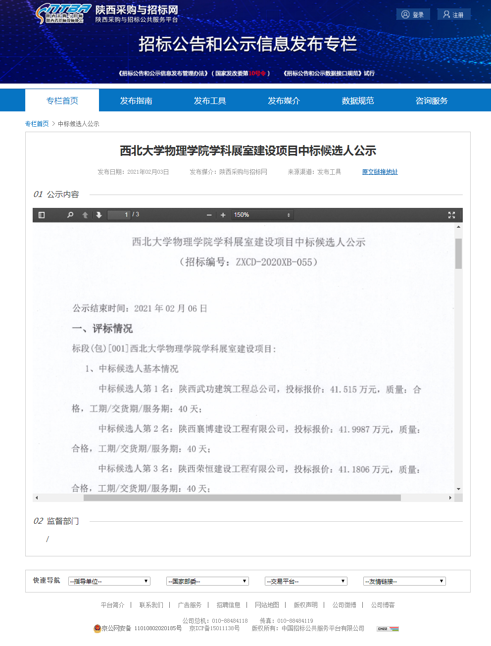乐投平台物理学院学科展室建设项目中标候选人公示 作者: 编辑:郭平 时间:2021-02-03 http://bulletin.sntba.com/candidateBulletin/2021-02-03/269328.html