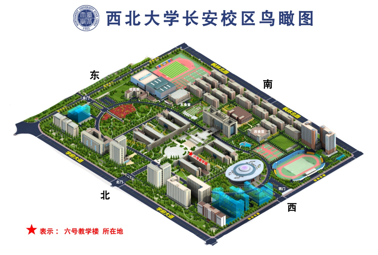 1.考生可于9月12日17:00后前往乐投平台长安校区六号教学楼(附下图)公告栏处查看考场安排表。