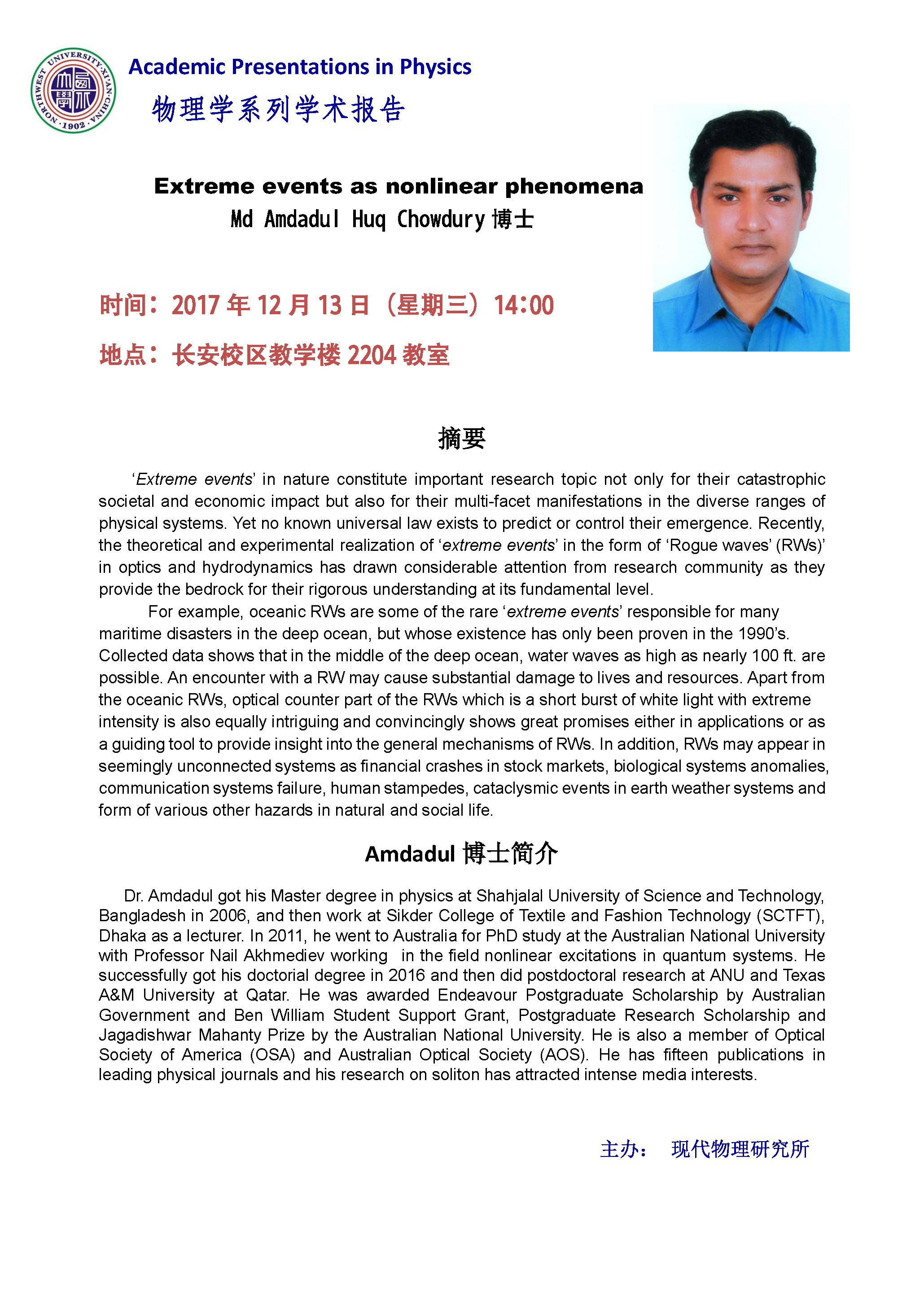 “杨钟健学术讲座”系列报告及分子模拟理论前沿讲习班议程
