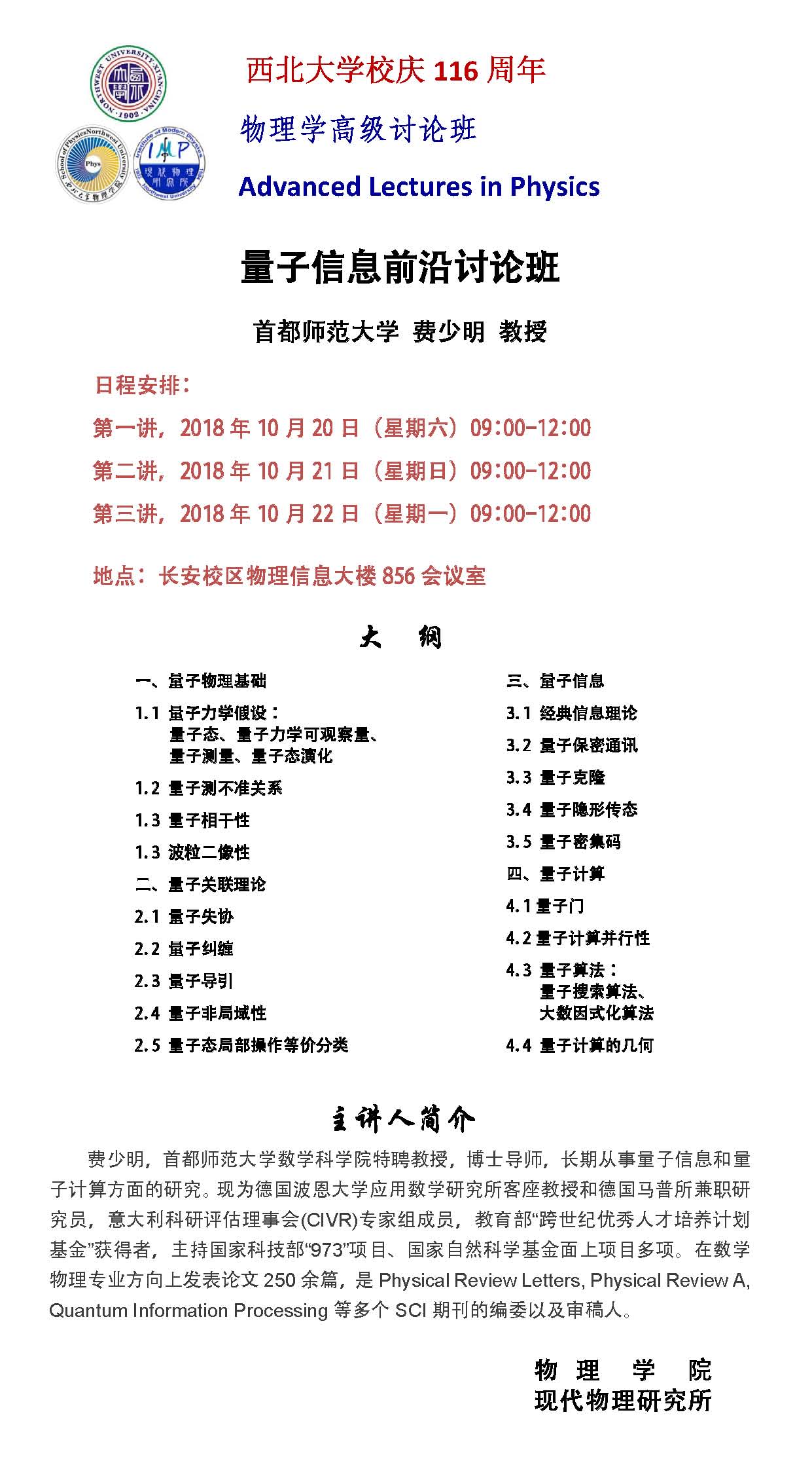 乐投平台校庆116周年物理学高级讨论班-量子信息前沿