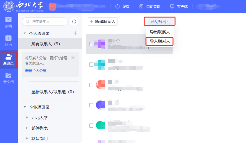 旧邮箱系统中的个人通讯录以及网盘文件,需要用户在邮箱系统迁移后,自行导出保存到本地,后续可以再自行导入到新邮箱系统中。若不做自行迁移操作,旧邮箱系统停止服务后,将丢失通讯录和网盘内的一切数据,且无法恢复!具体迁移步骤如下: