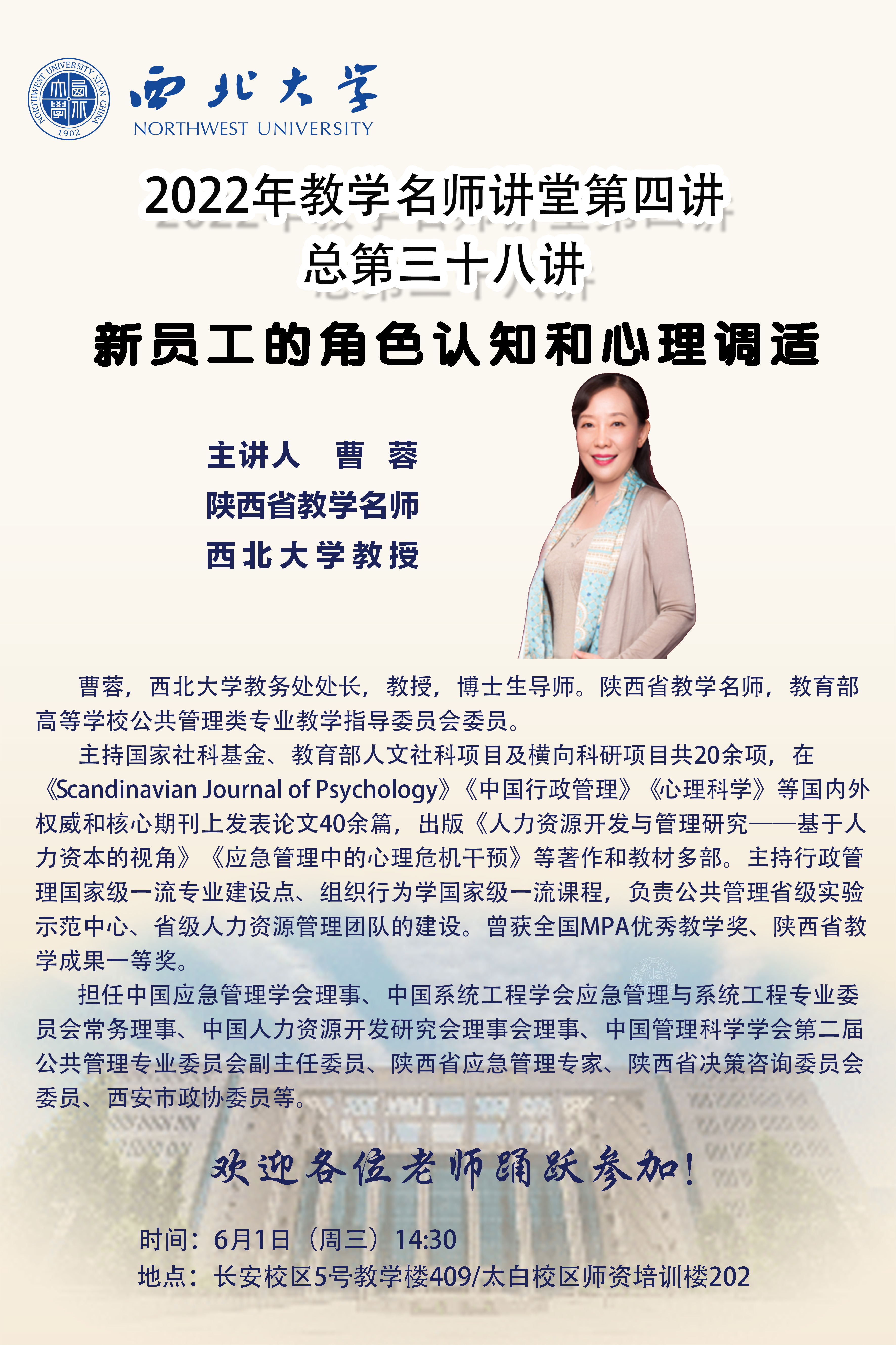 乐投平台2022年教学名师讲堂第四讲——新员工的角色认知和心理调适