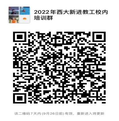 2.请2022年新进校教职工尽快加入“2022年西大新进教工校内培训群”(扫描下附微信群二维码),并按照“单位+姓名”格式修改备注名。