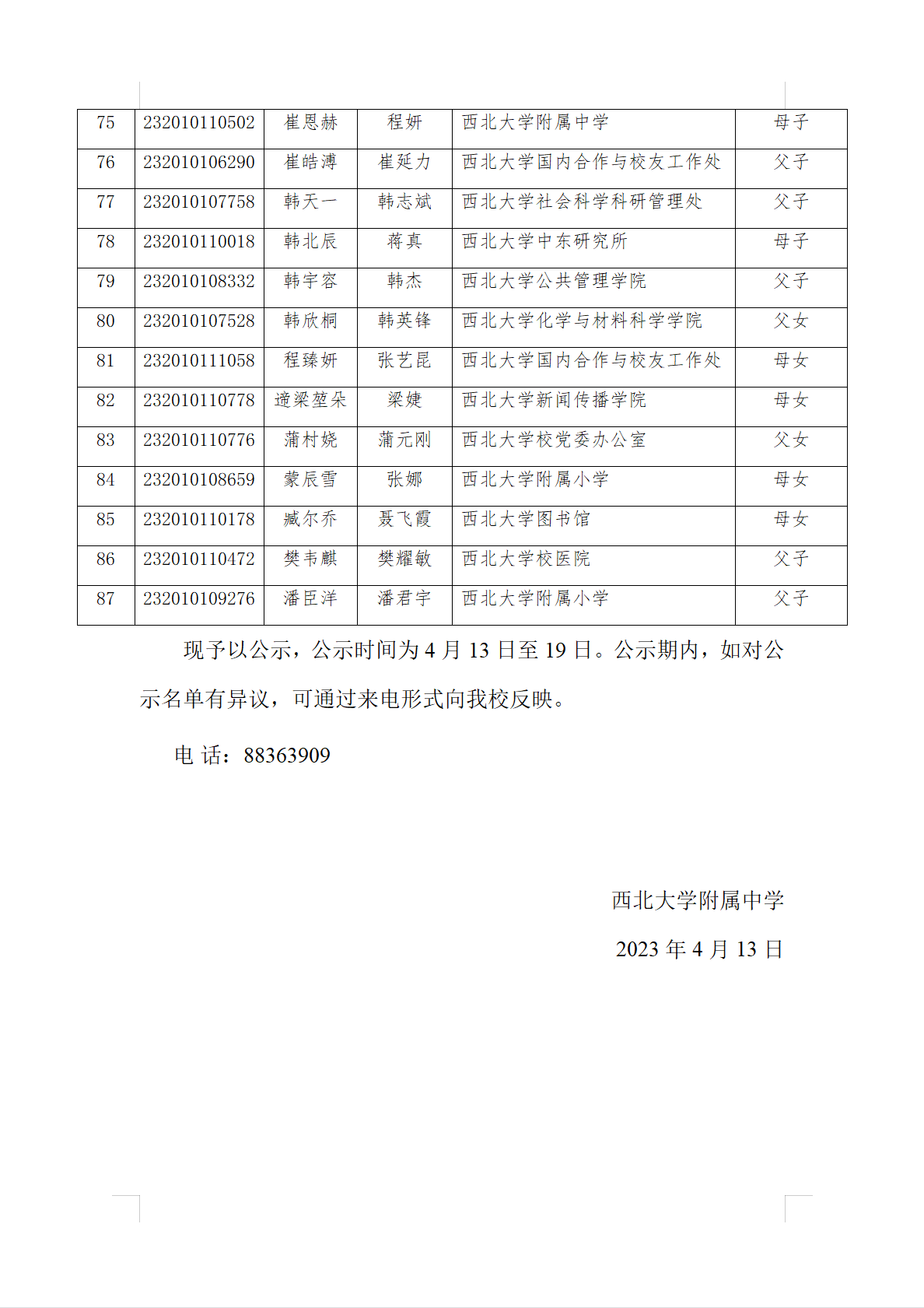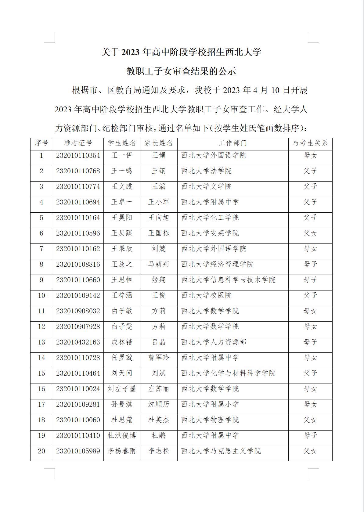 关于2023年高中阶段学校招生乐投平台教职工子女审查结果的公示