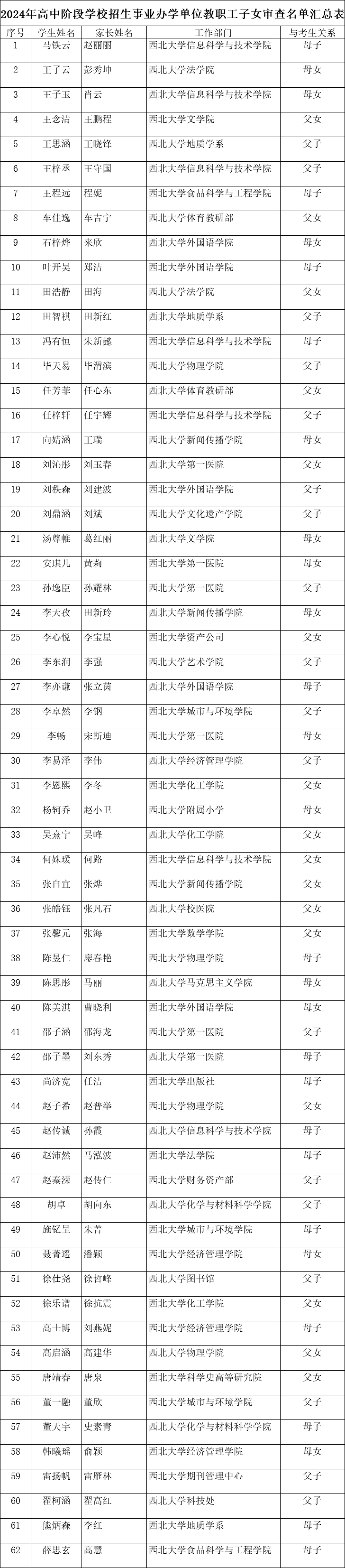 关于2024年高中阶段学校招生乐投平台 正式事业编制的教职工直系初中应届毕业子女审查结果的公示 作者:附中 编辑:附中 时间:2024-05-13 根据市、区教育局通知及要求,乐投(中国)一站式服务平台于2024年5月6日开展2024年高中阶段学校招生乐投平台正式事业编制的教职工直系初中应届毕业子女审查工作。经大学人力资源部门、纪检部门审核,通过名单如下(按学生姓氏笔画数排序): 现予以公示,公示时间为5月13日至5月19日。公示期内,如对公示名单有异议,可通过来电形式向乐投(中国)一站式服务平台反映。 电 话:88363909 乐投平台附属中学 2024年5月13日