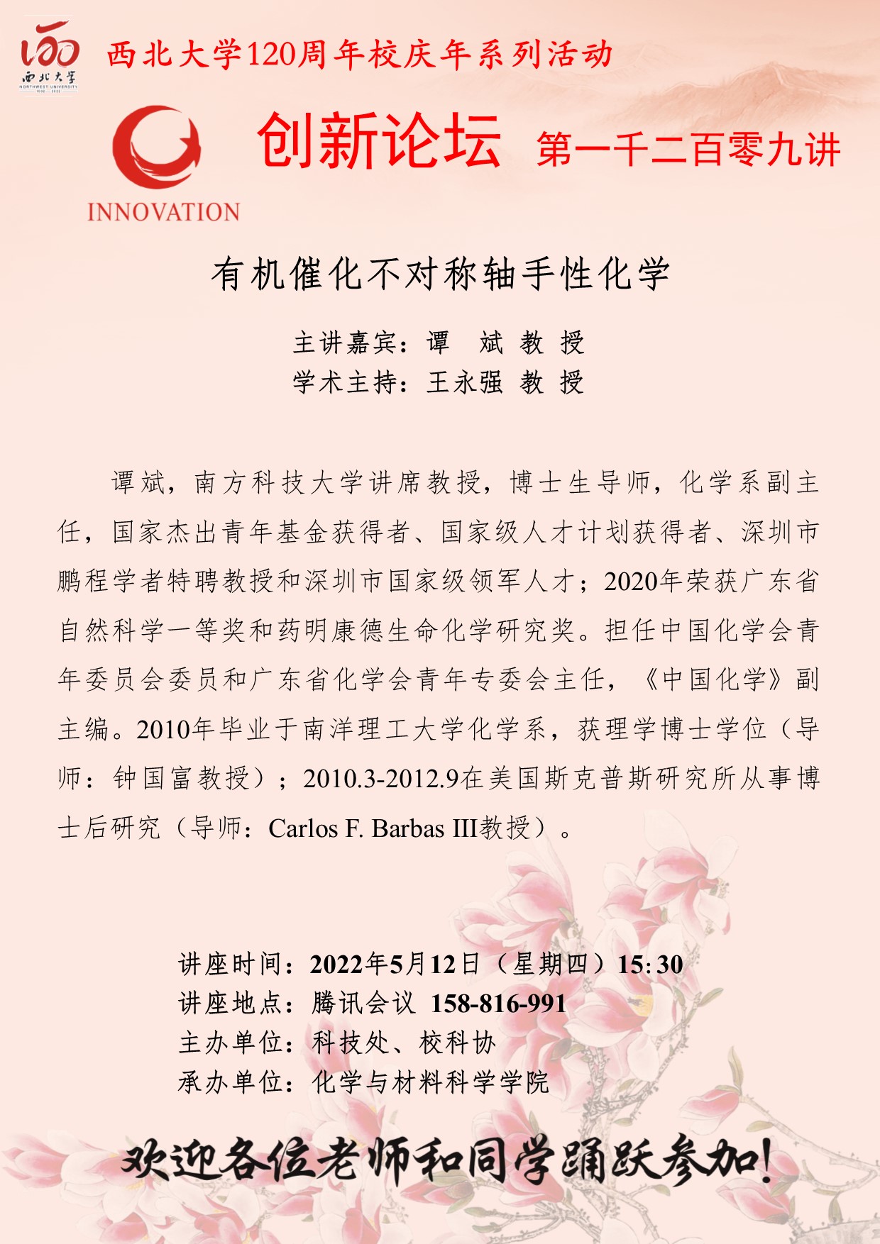 乐投平台创新论坛第一千二百一十讲暨120周年校庆年系列活动:多环天然产物合成中的环系构建