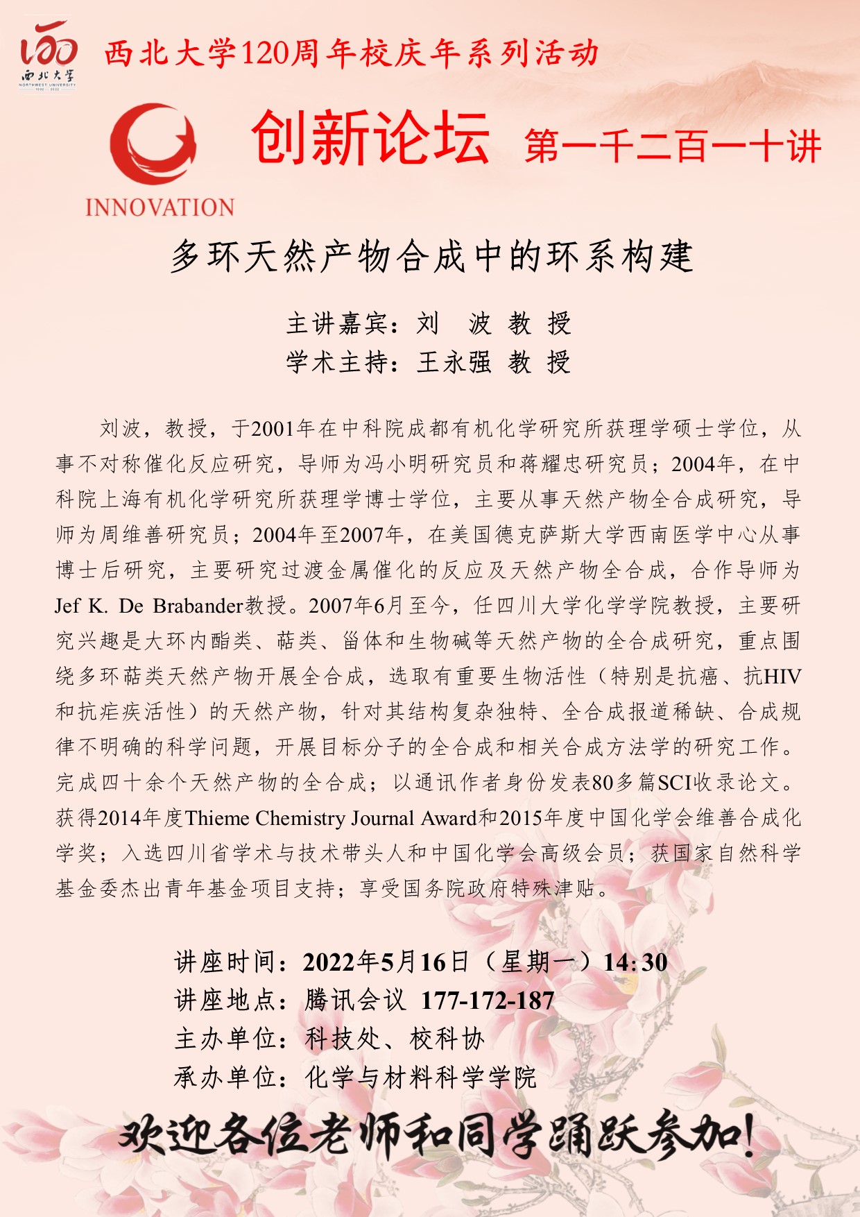 乐投平台创新论坛第一千二百一十讲暨120周年校庆年系列活动:多环天然产物合成中的环系构建