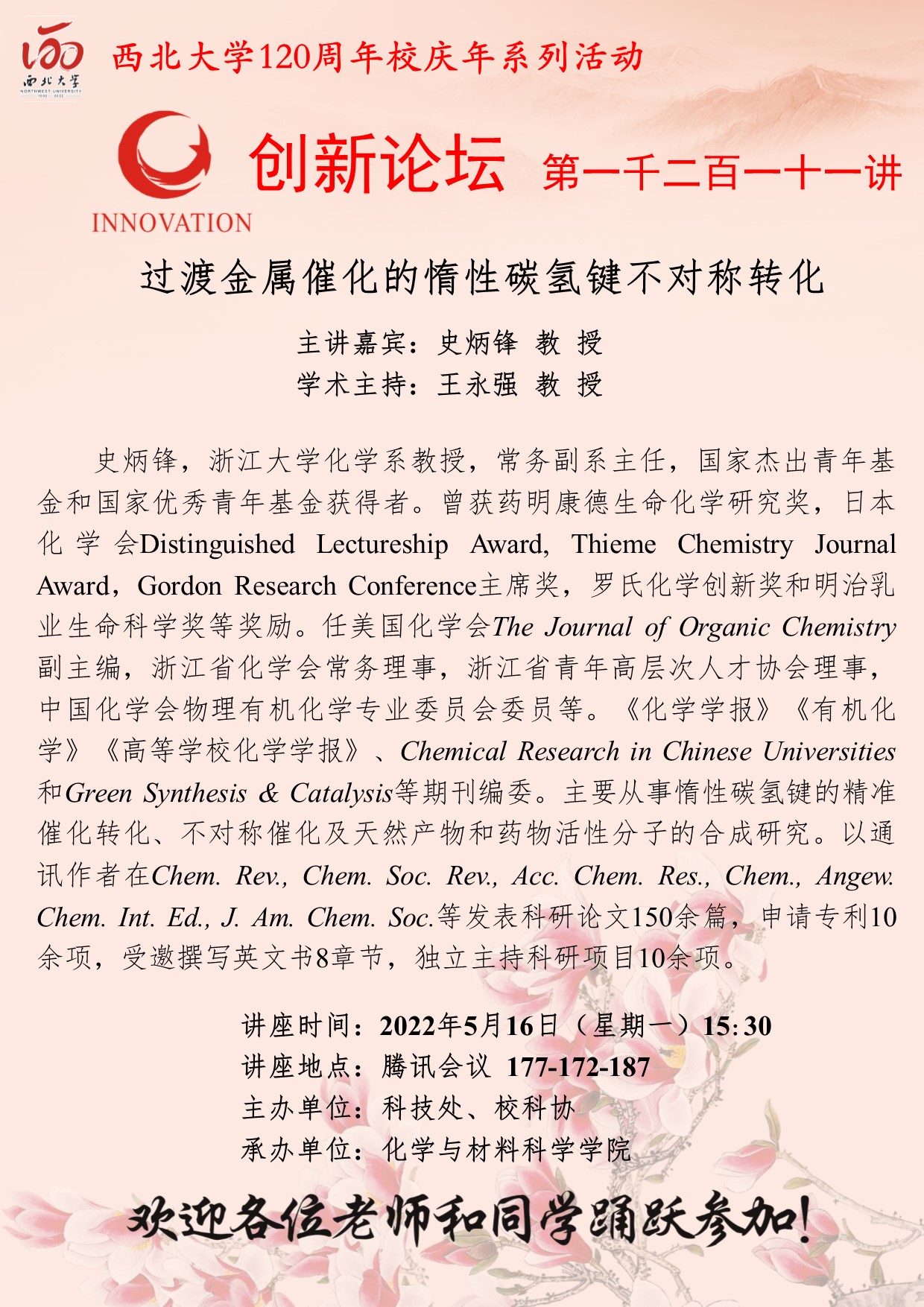 乐投平台创新论坛第一千二百一十二讲暨120周年校庆年系列活动:病毒感染关键蛋白糖基化与药物研发---以SARS-CoV-2为例