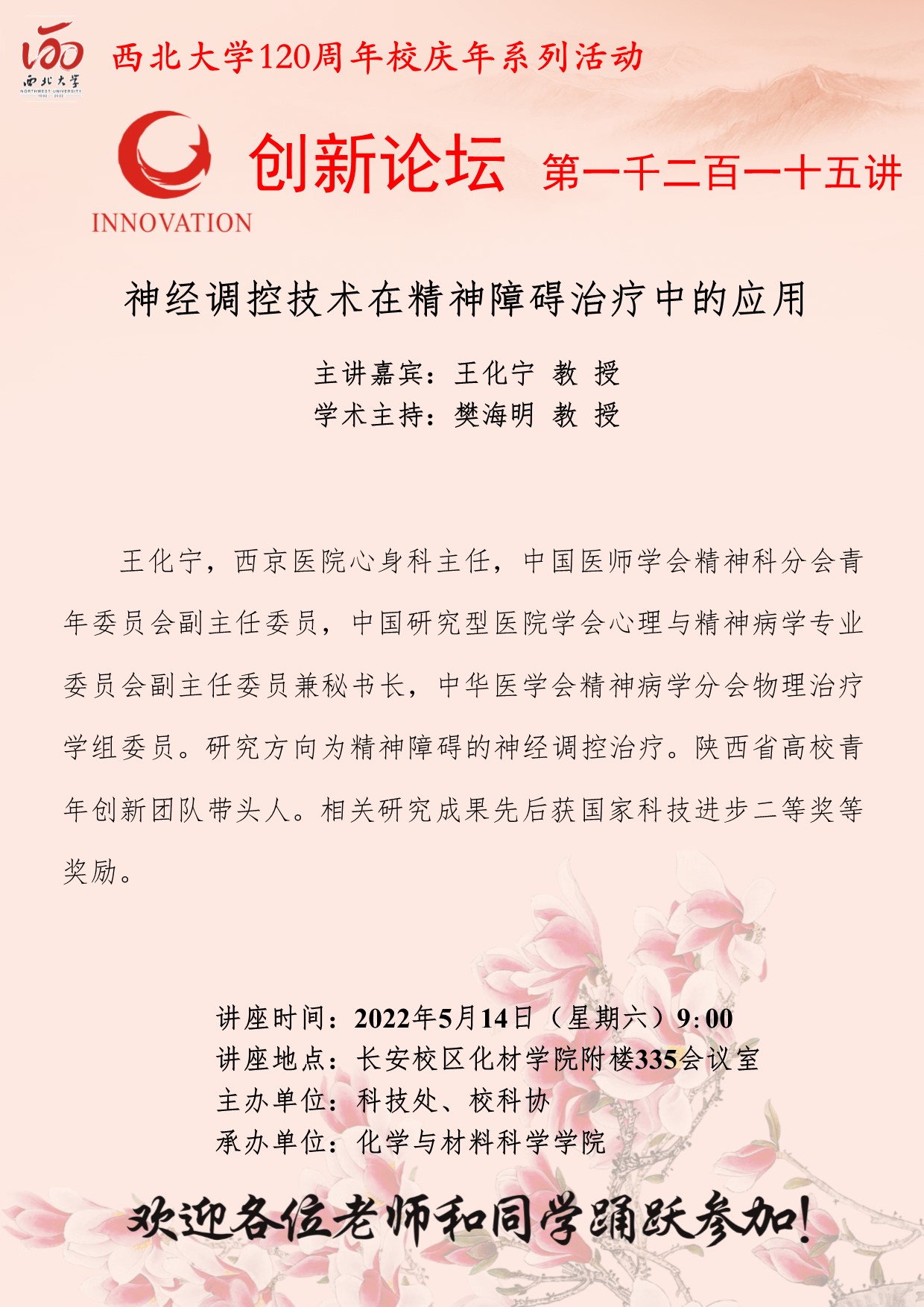 乐投平台创新论坛第一千二百一十五讲暨120周年校庆年系列活动:神经调控技术在精神障碍治疗中的应用