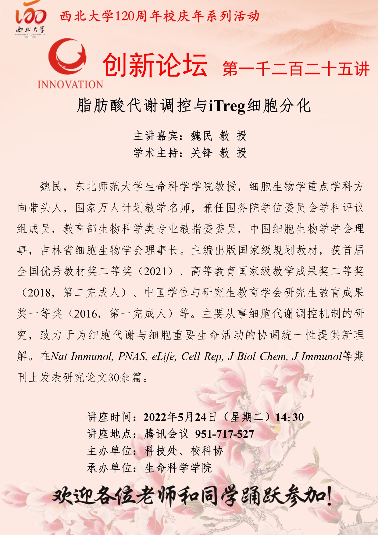 乐投平台创新论坛第一千二百二十五讲暨120周年校庆年系列活动:脂肪酸代谢调控与iTreg细胞分化