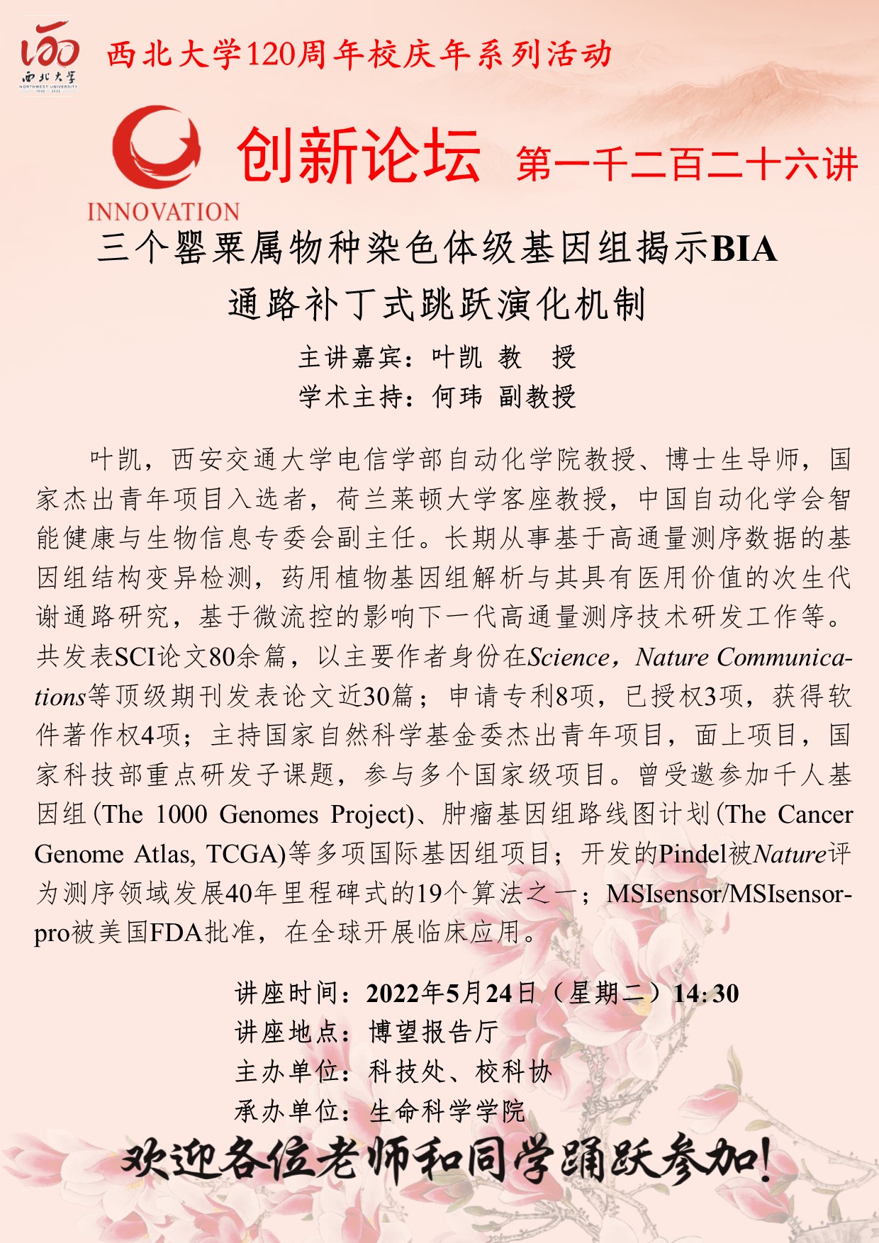 乐投平台创新论坛第一千二百二十六讲暨120周年校庆年系列活动:三个罂粟属物种染色体级基因组揭示BIA通路补丁式跳跃演化机制