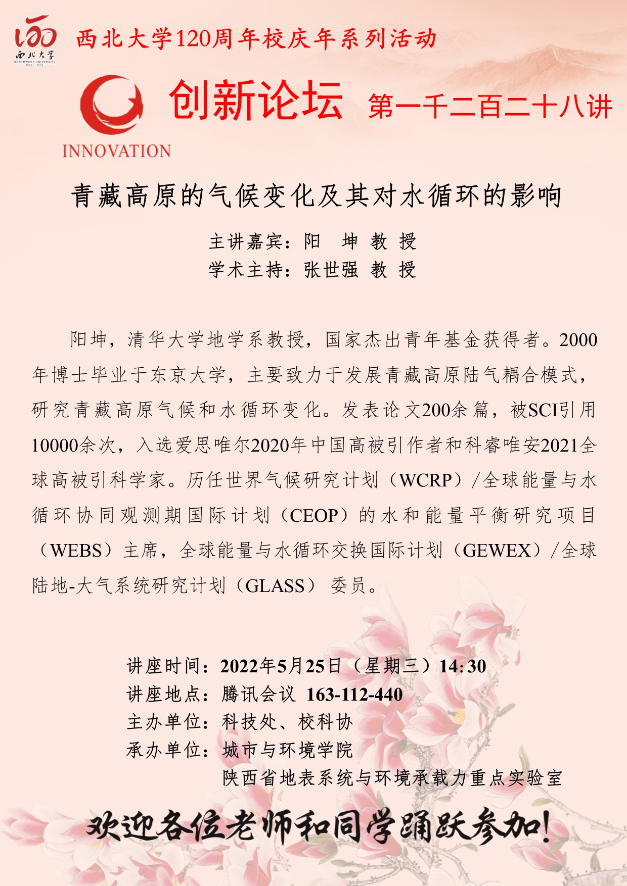 乐投平台创新论坛第一千二百二十八讲暨120周年校庆年系列活动:青藏高原的气候变化及其对水循环的影响