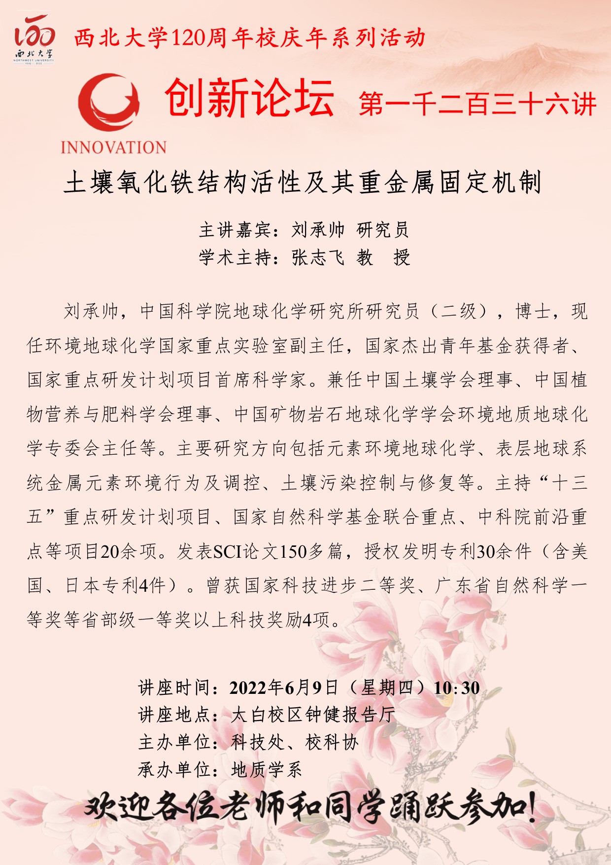 乐投平台创新论坛第一千二百三十六讲暨120周年校庆年系列活动:土壤氧化铁结构活性及其重金属固定机制