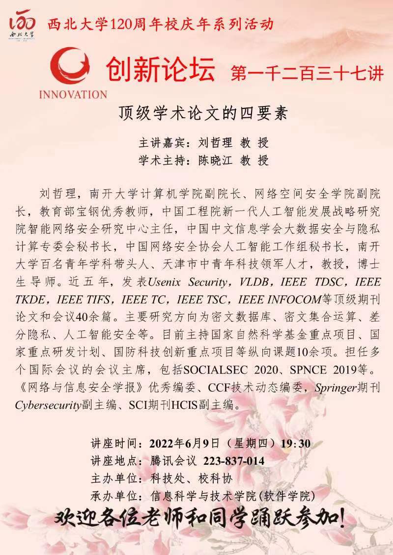 乐投平台创新论坛第一千二百三十七讲暨120周年校庆年系列活动:顶级学术论文的四要素