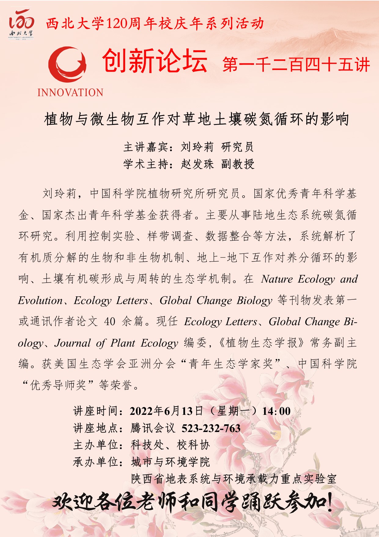 乐投平台创新论坛第一千二百四十六讲暨120周年校庆年系列活动:全球变化下的根际生态与土壤碳过程