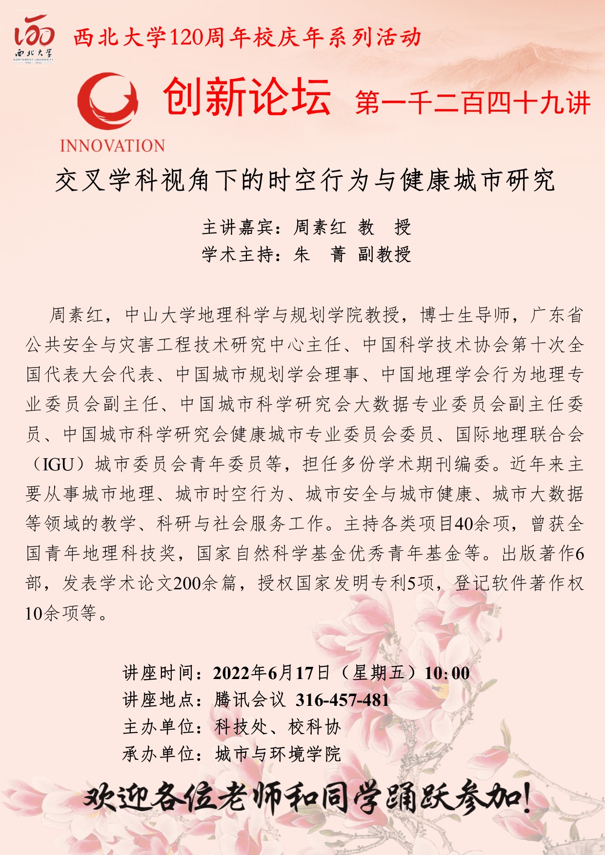 乐投平台创新论坛第一千二百四十九讲暨120周年校庆年系列活动:交叉学科视角下的时空行为与健康城市研究