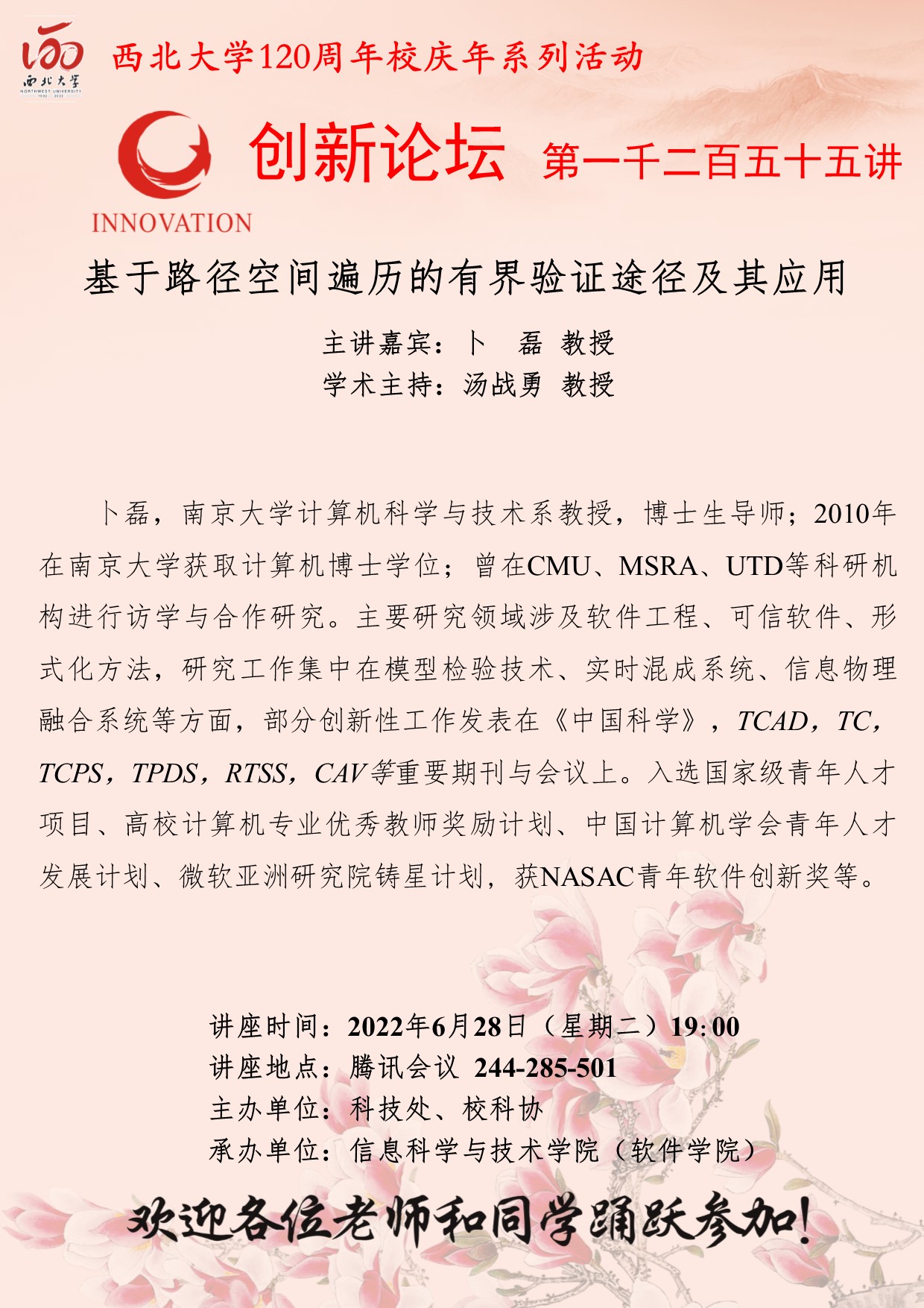 乐投平台创新论坛第一千二百五十五讲暨120周年校庆年系列活动:基于路径空间遍历的有界验证途径及其应用
