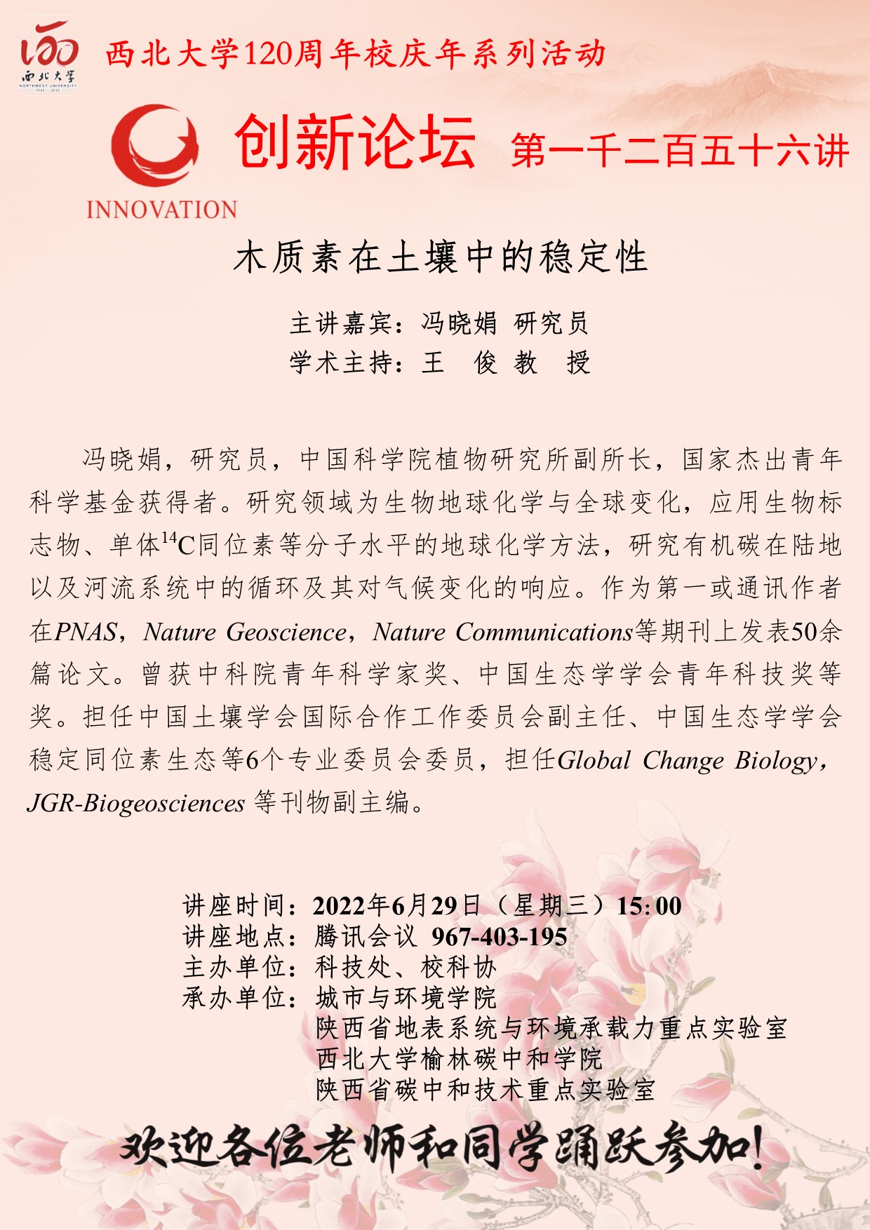 乐投平台创新论坛第一千二百五十六讲暨120周年校庆年系列活动:木质素在土壤中的稳定性