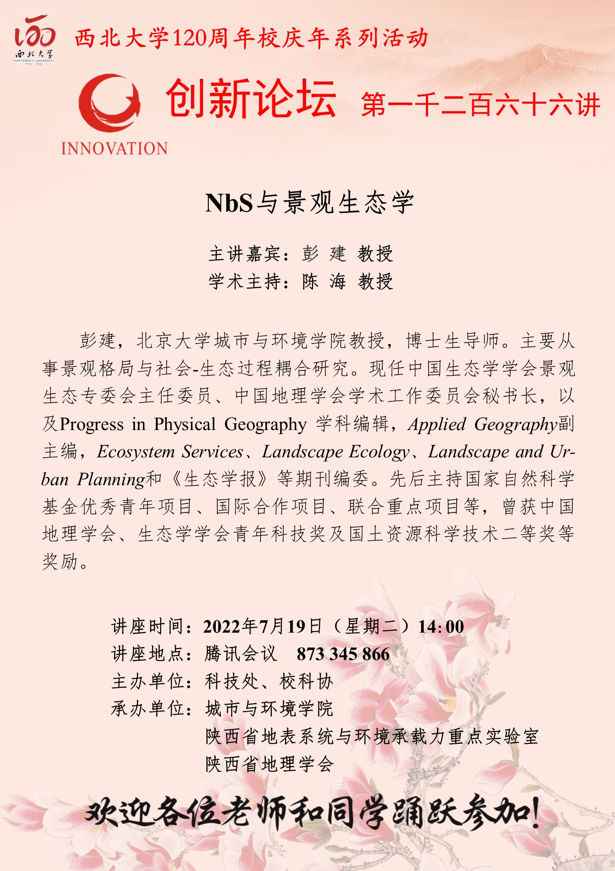 乐投平台创新论坛第一千二百六十六讲暨120周年校庆年系列活动:NbS与景观生态学