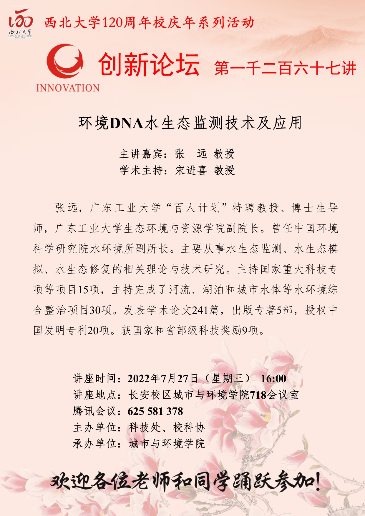 乐投平台创新论坛第一千二百六十七讲暨120周年校庆年系列活动:环境DNA水生态监测技术及应用