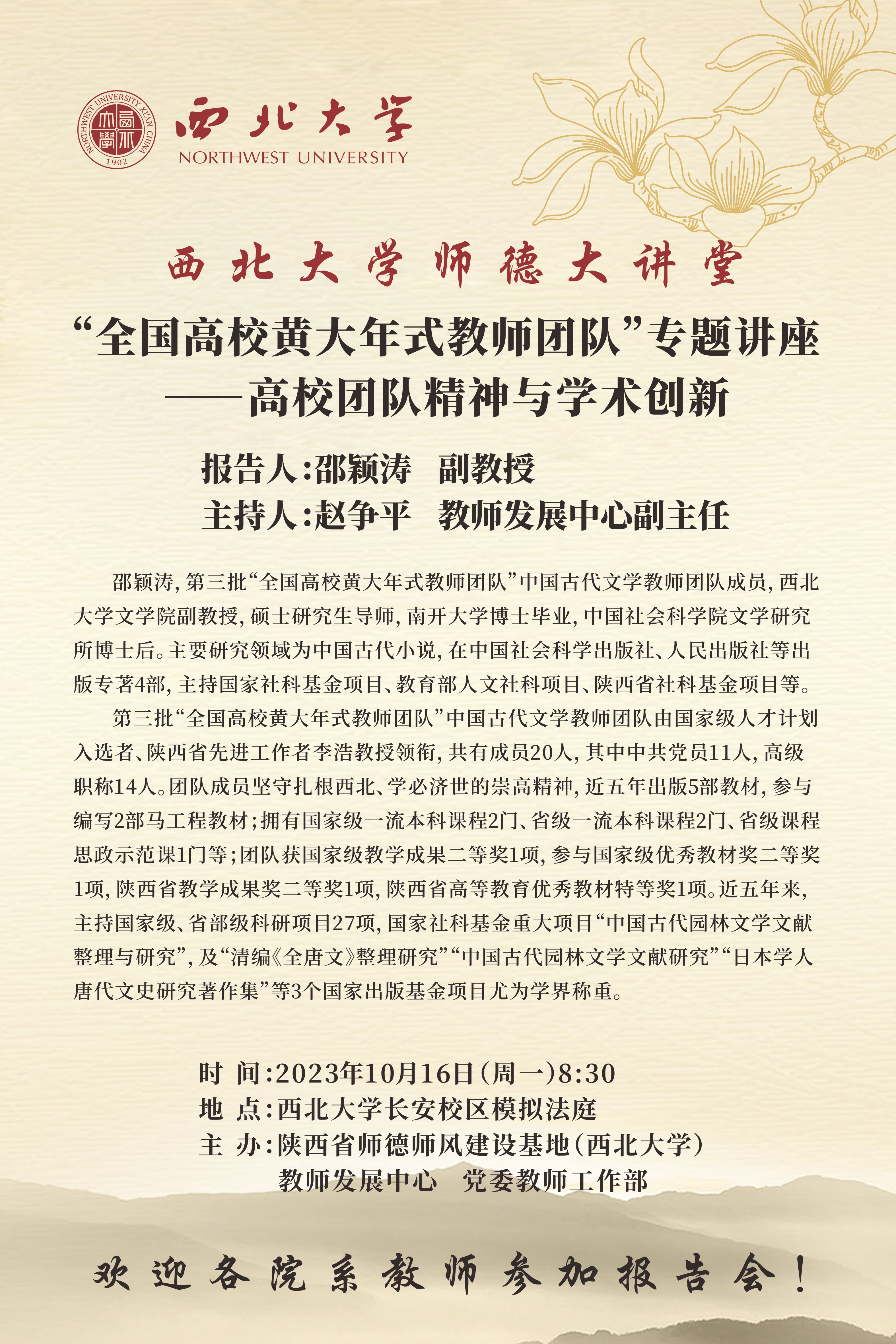 乐投平台师德大讲堂:“全国高校黄大年式教师团队”专题讲座——高校团队精神与学术创新